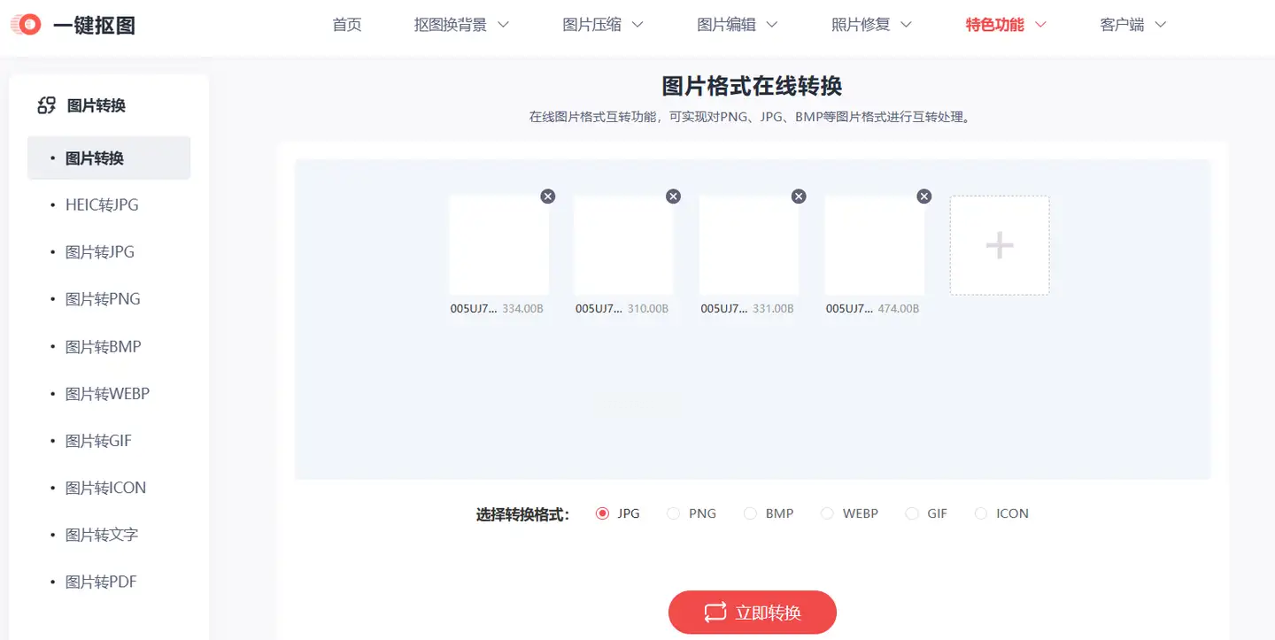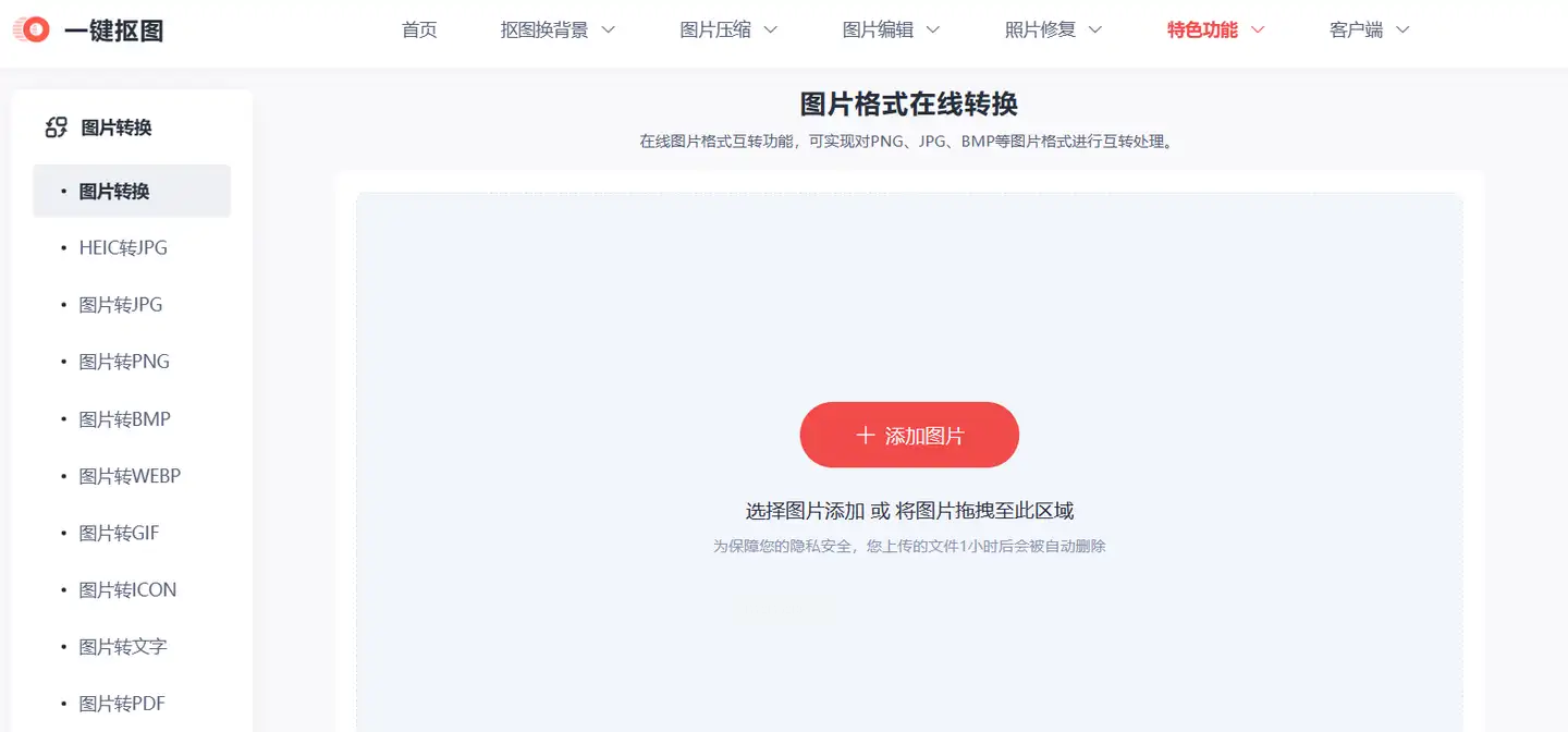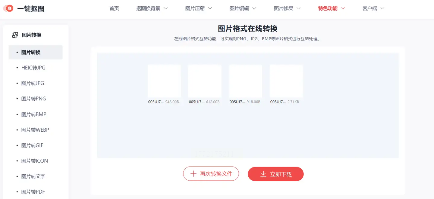 1. 进入图片转换工具:打开网站后,在顶部导航栏找到"图片格式转换",不用登录直接用。
