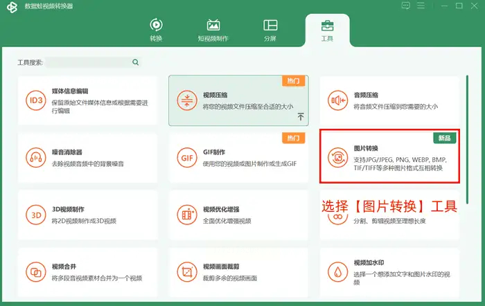 1. 打开图片转换功能:运行软件后,在主界面找到"图片工具"板块,点击"图片转换"。