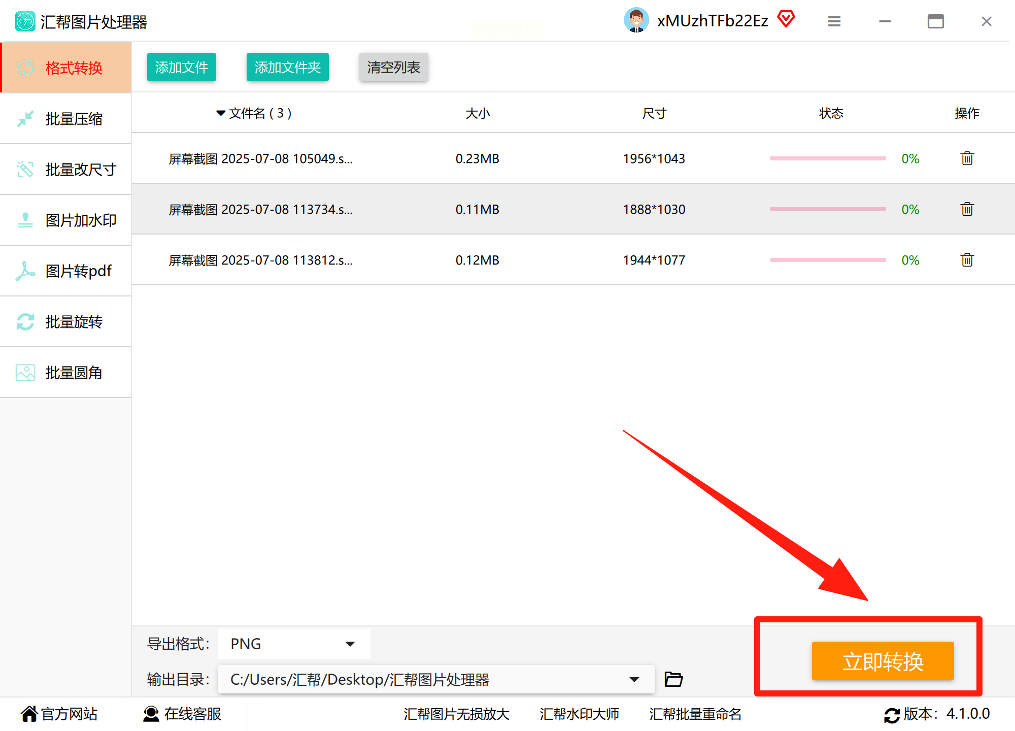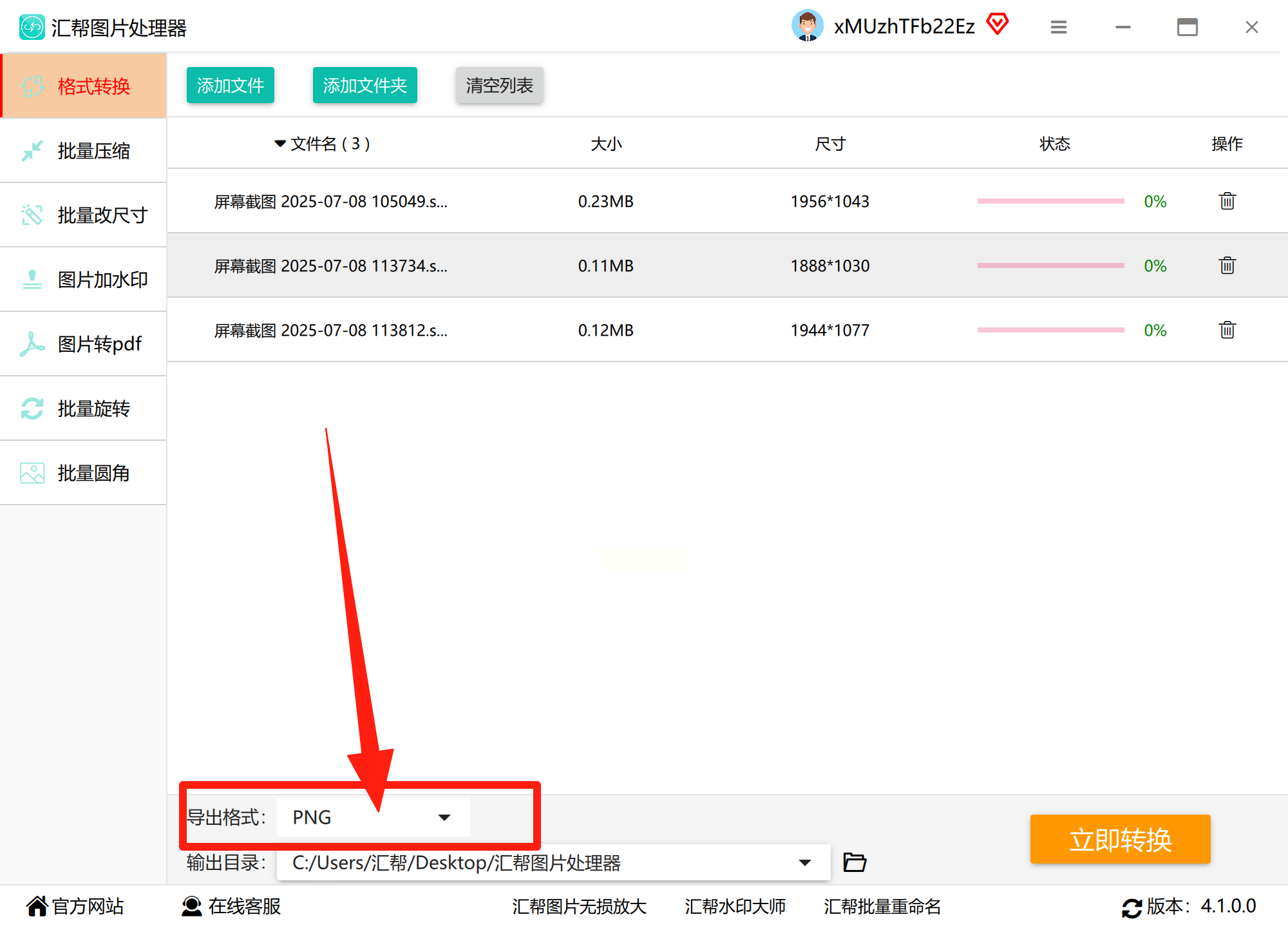 3. 选择PNG格式:在输出格式里选"PNG",系统会自动开始转换。