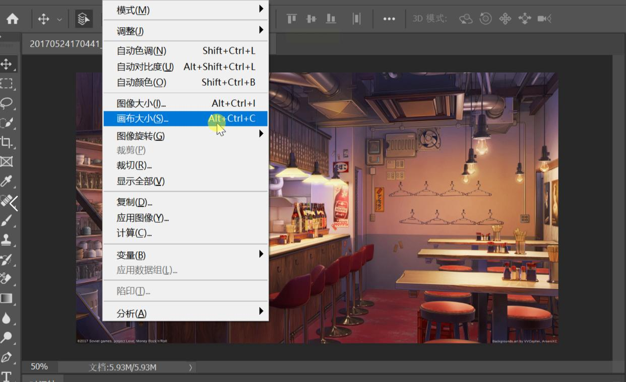 2. 调整画布大小:点击菜单栏【图像】->【画布大小】,把宽高各增加10-20像素。为什么要增加?因为后面要做圆角,避免图片内容被裁剪到,留一点边框空间。