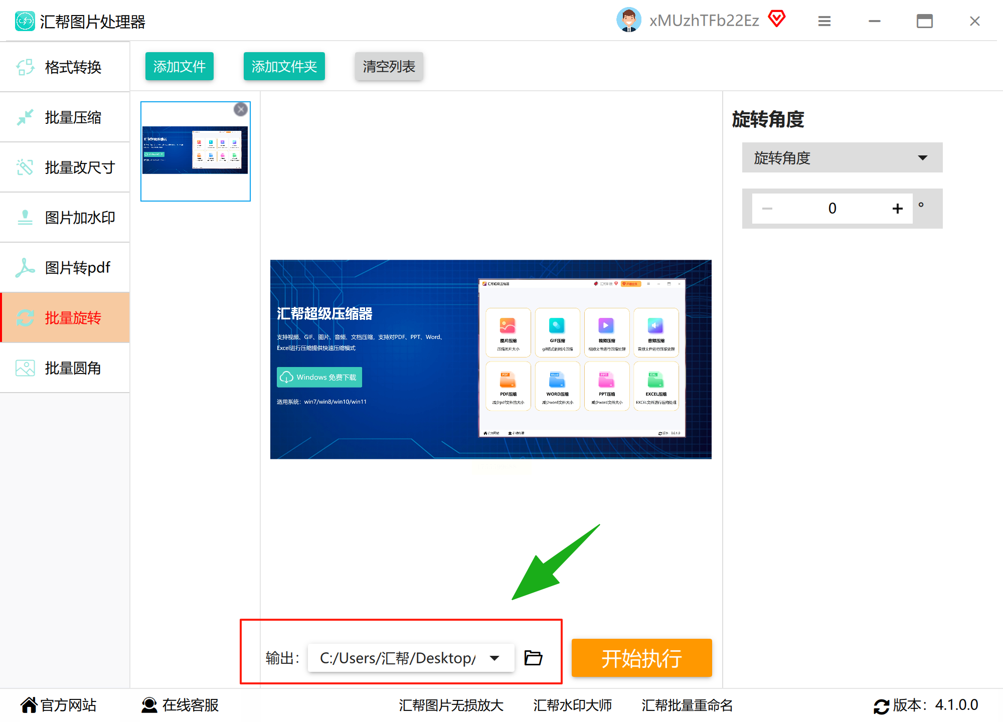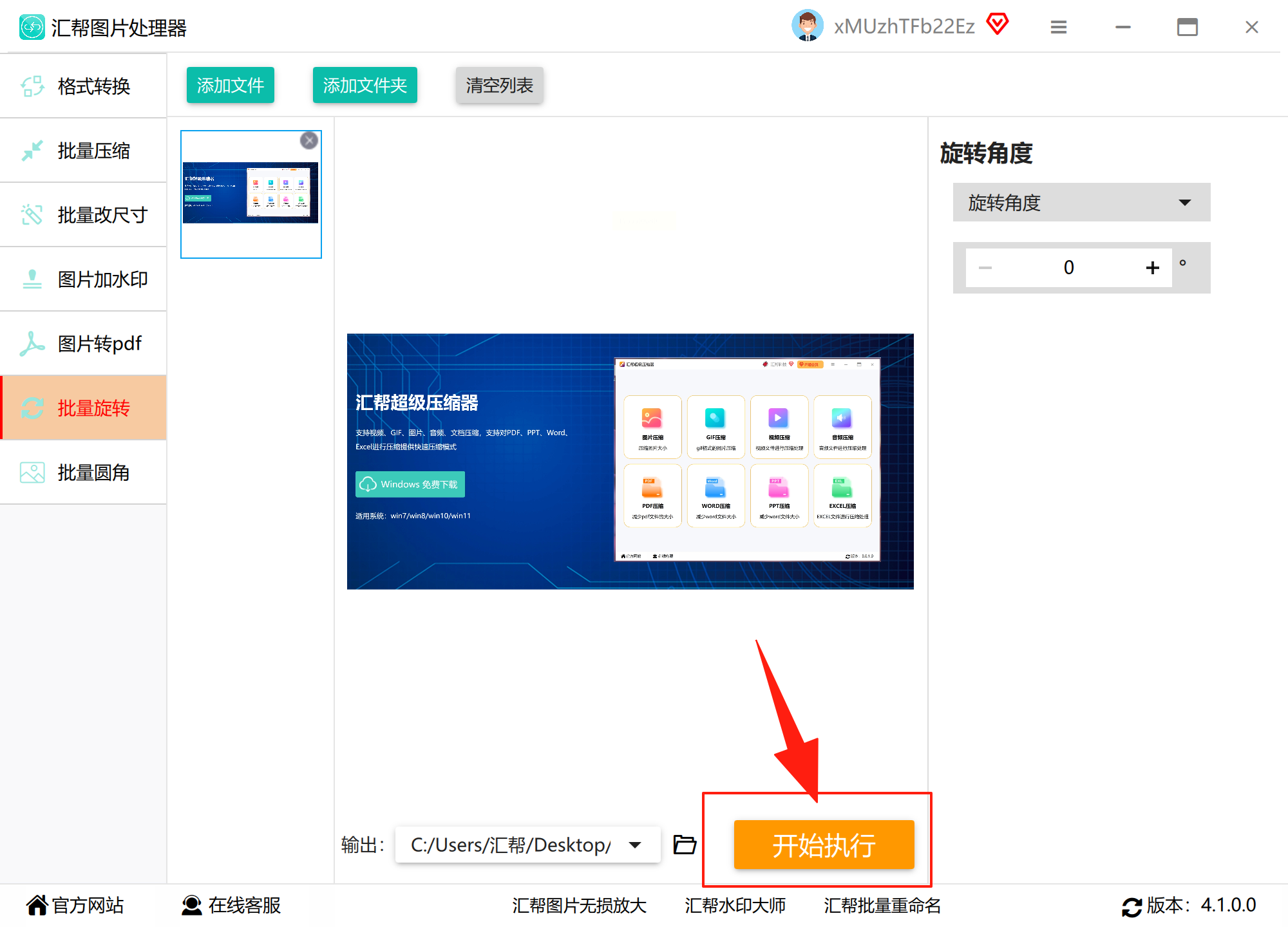 旋转参数设置页面是核心操作区域。这里不仅要设置旋转角度,还要注意检查图片预览效果。