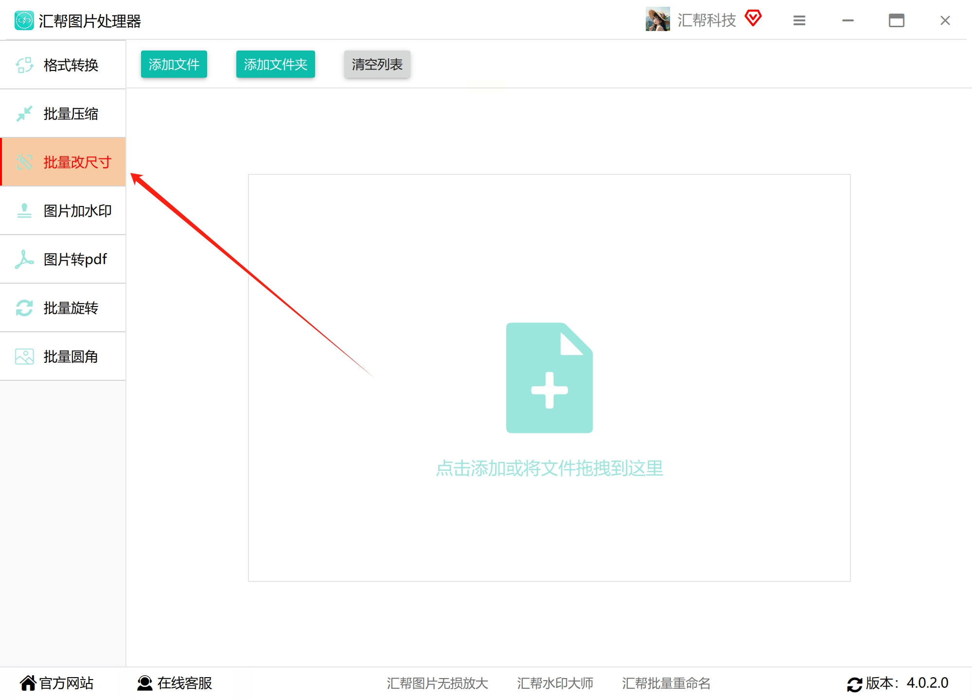 1. 打开软件 → 左侧选择【批量改尺寸】;