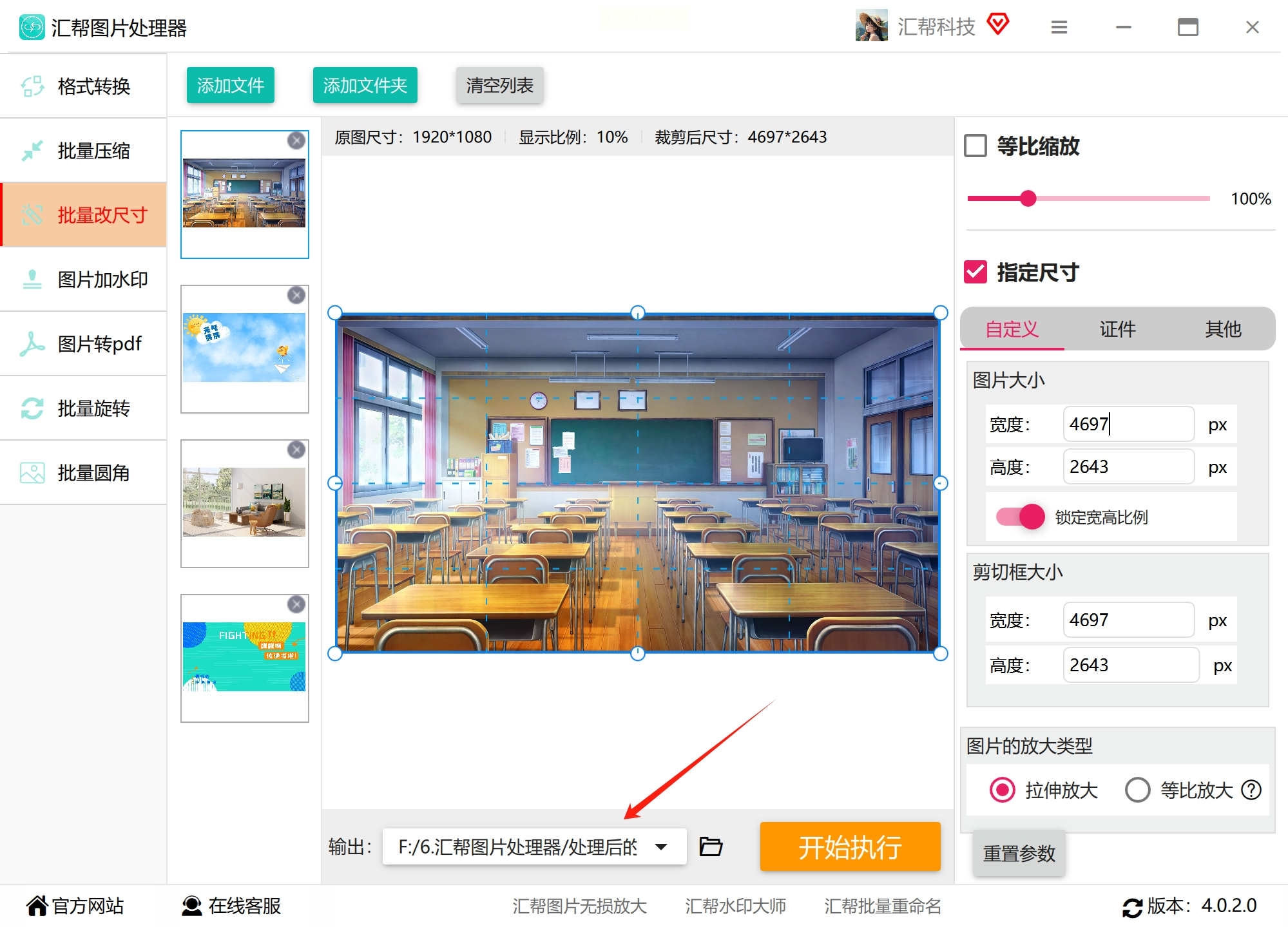 4. 调整模式:选“拉伸放大”(避免留白),底部选好输出文件夹;