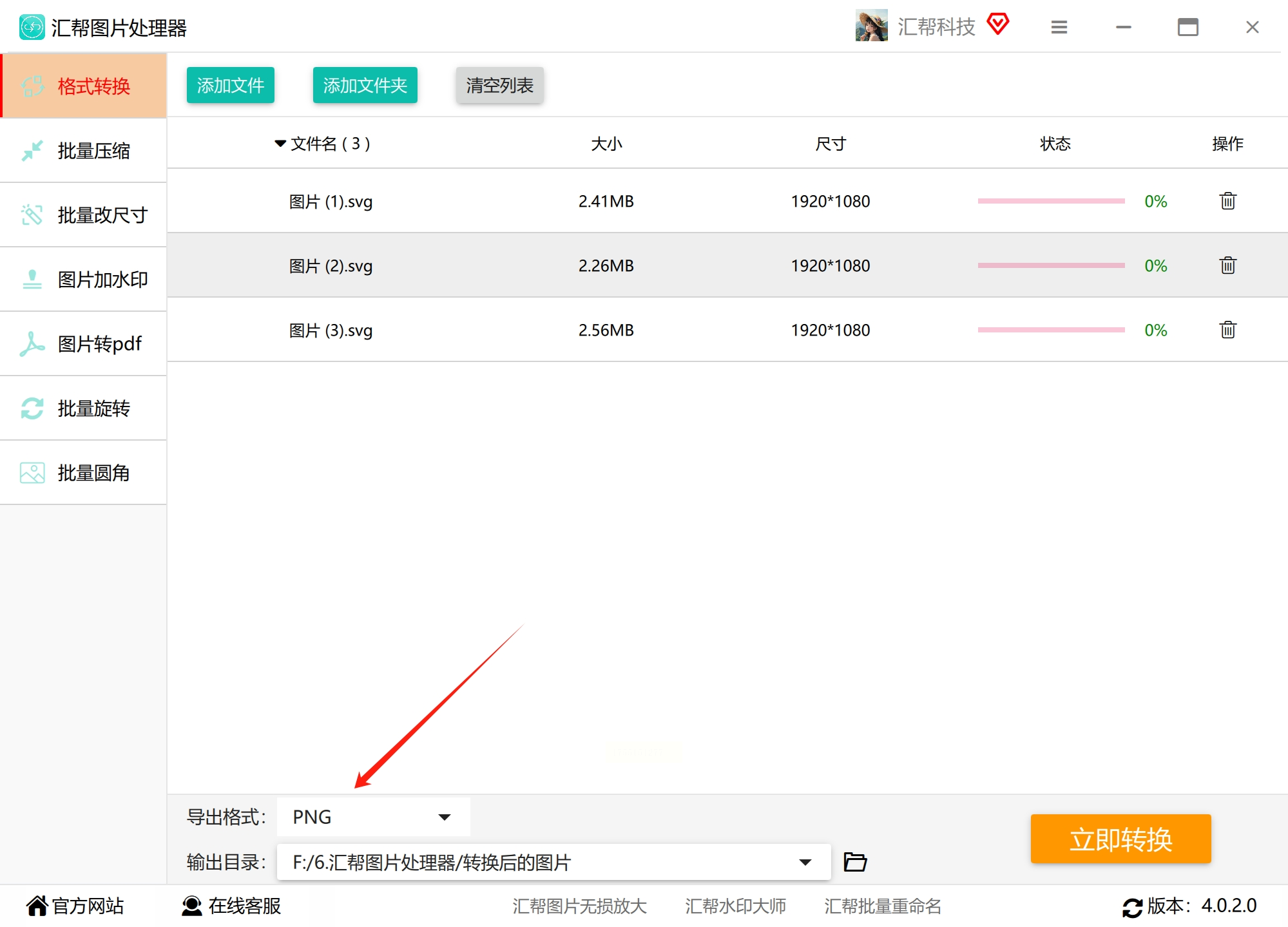 4. 设置好输出目录后,点击底部的"立即转换"按钮开始处理