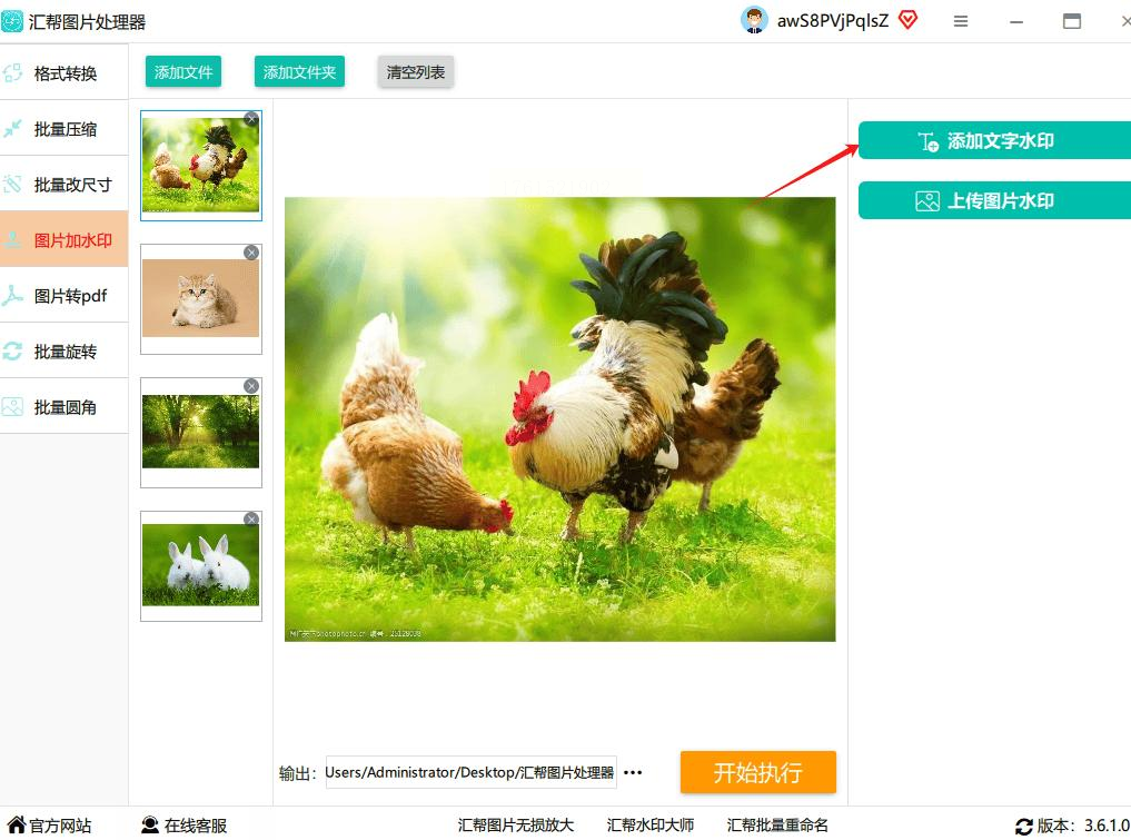 一切设置妥当后,点击“开始执行”按钮。软件会自动为所有图片批量添加水印,整个过程无需手动干预,非常省心。