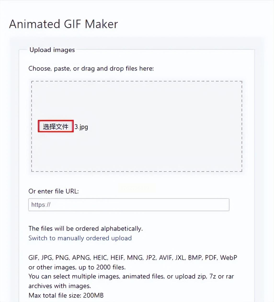 2. 点击"Choose File"按钮上传JPG图片(单次支持单个文件,多张需拼接或用其他工具预处理)。