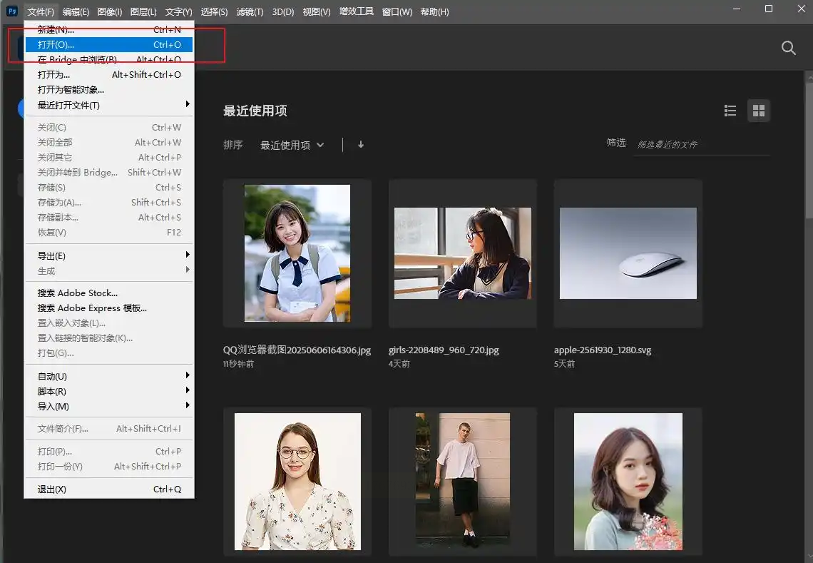 1. 打开Photoshop后,执行"文件"→"存储为"
