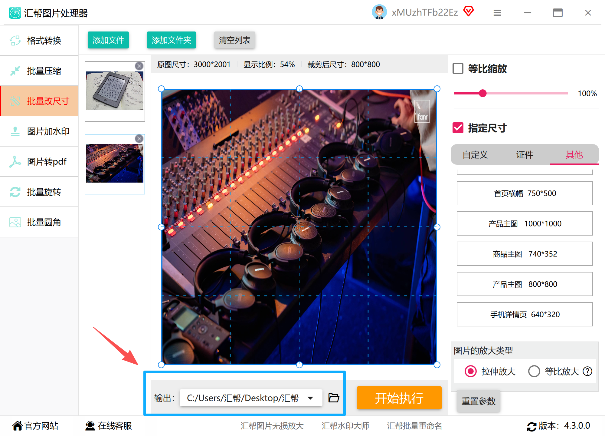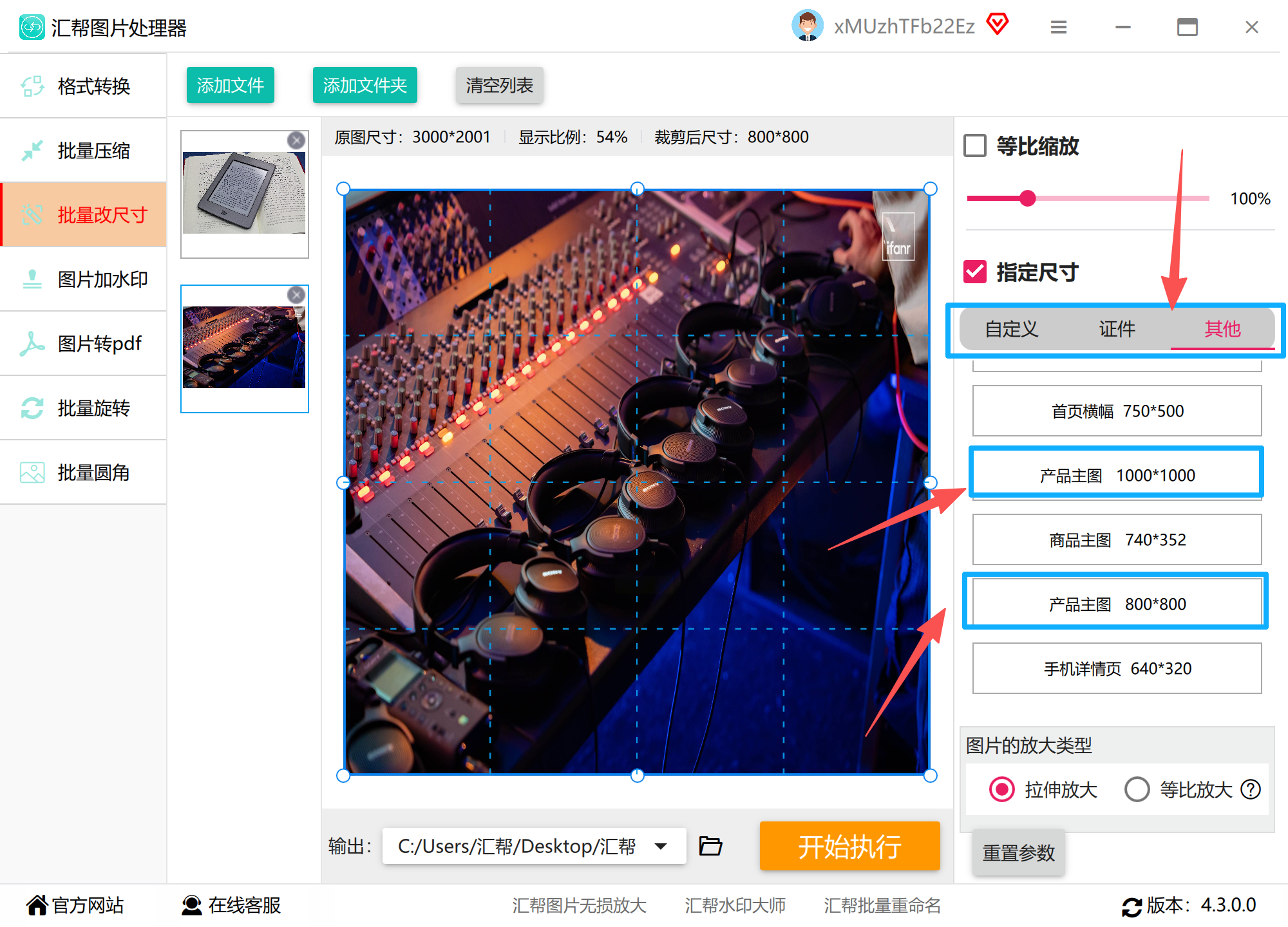 3. 参数设置:勾选“统一尺寸”选项,在预设列表中选择平台标准(如淘宝800×800px),或手动输入自定义数值。
