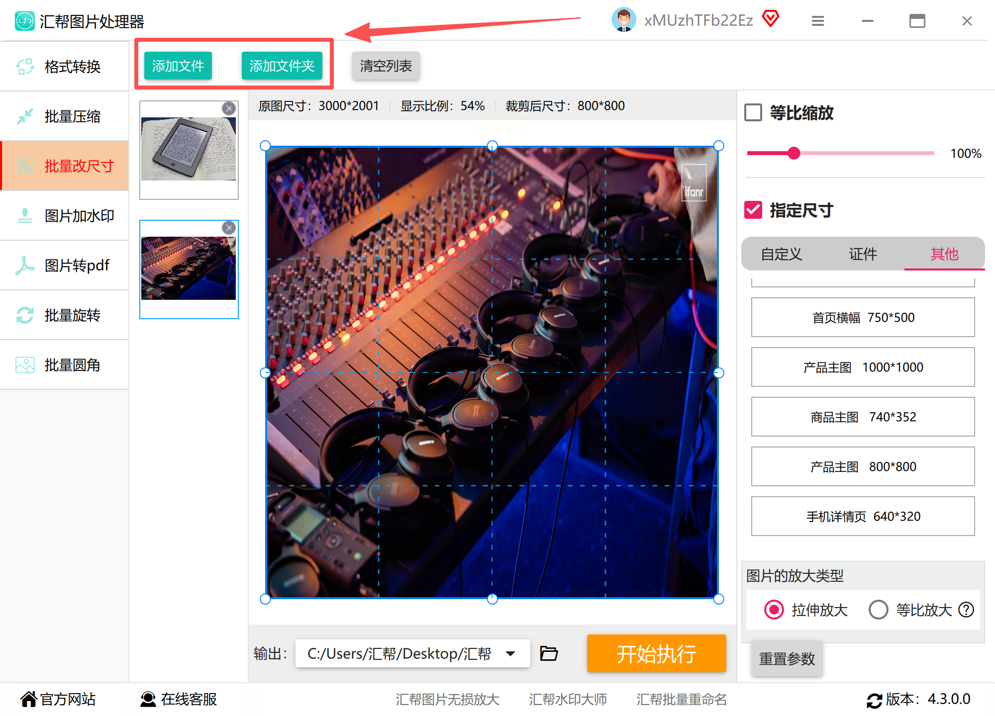 2. 导入文件:点击“添加文件”按钮,支持直接拖拽产品主图文件夹,软件会自动识别所有可编辑格式(JPG/PNG/WEBP等)。