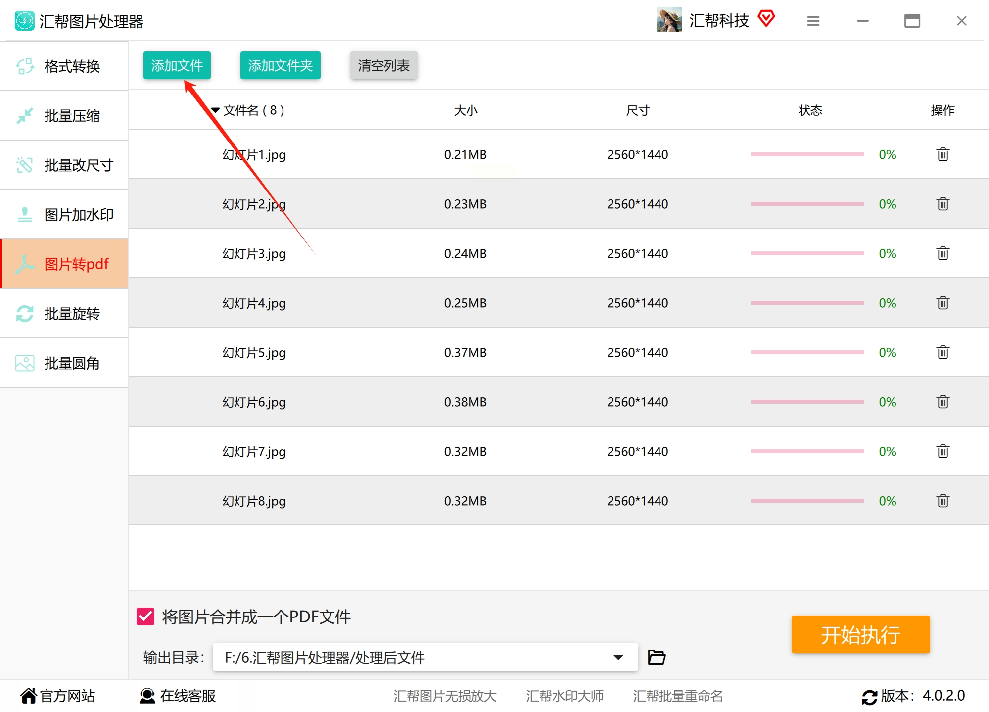 - 点"添加文件"按钮,找到你要合并的图片(JPG/PNG/TIFF都能混着来!)