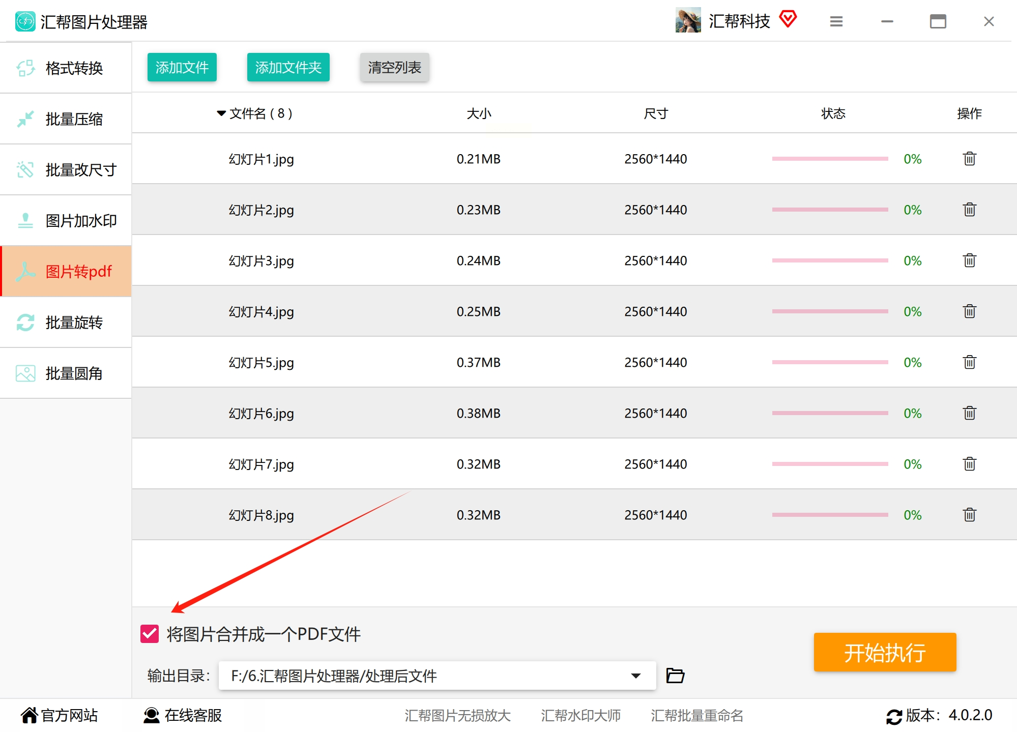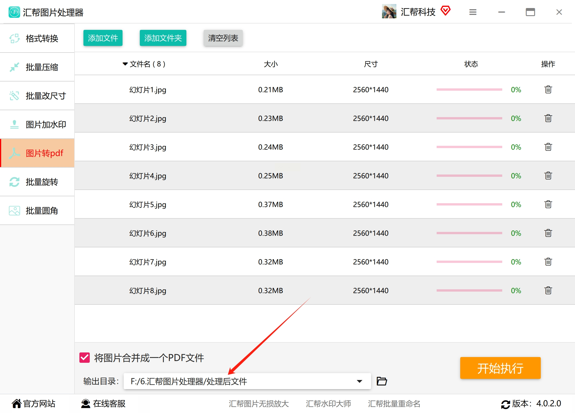 4. 一键转换:点"开始转换",10张图3秒就搞定,PDF文件自动存到你指定的文件夹!