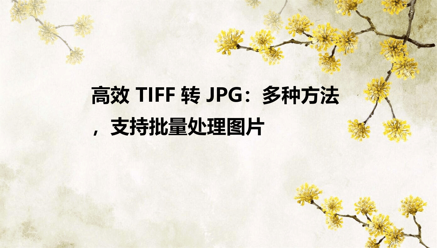 在图像处理中,TIFF格式虽然画质出色,但文件体积大、兼容性弱,而JPG凭借高压缩率和广泛支持成为主流格式。无论是网页展示、社交媒体分享还是节省存储空间,将TIFF转为JPG都是必要操作。本文将详细介绍7种简单易用的转换方法,让你轻松完成格式转换。