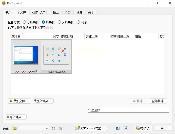 打开XnConvert软件,第一个标签页就是“输入”。你可以把AVIF文件直接拖到这个页面,或者通过“添加文件”按钮进行导入。