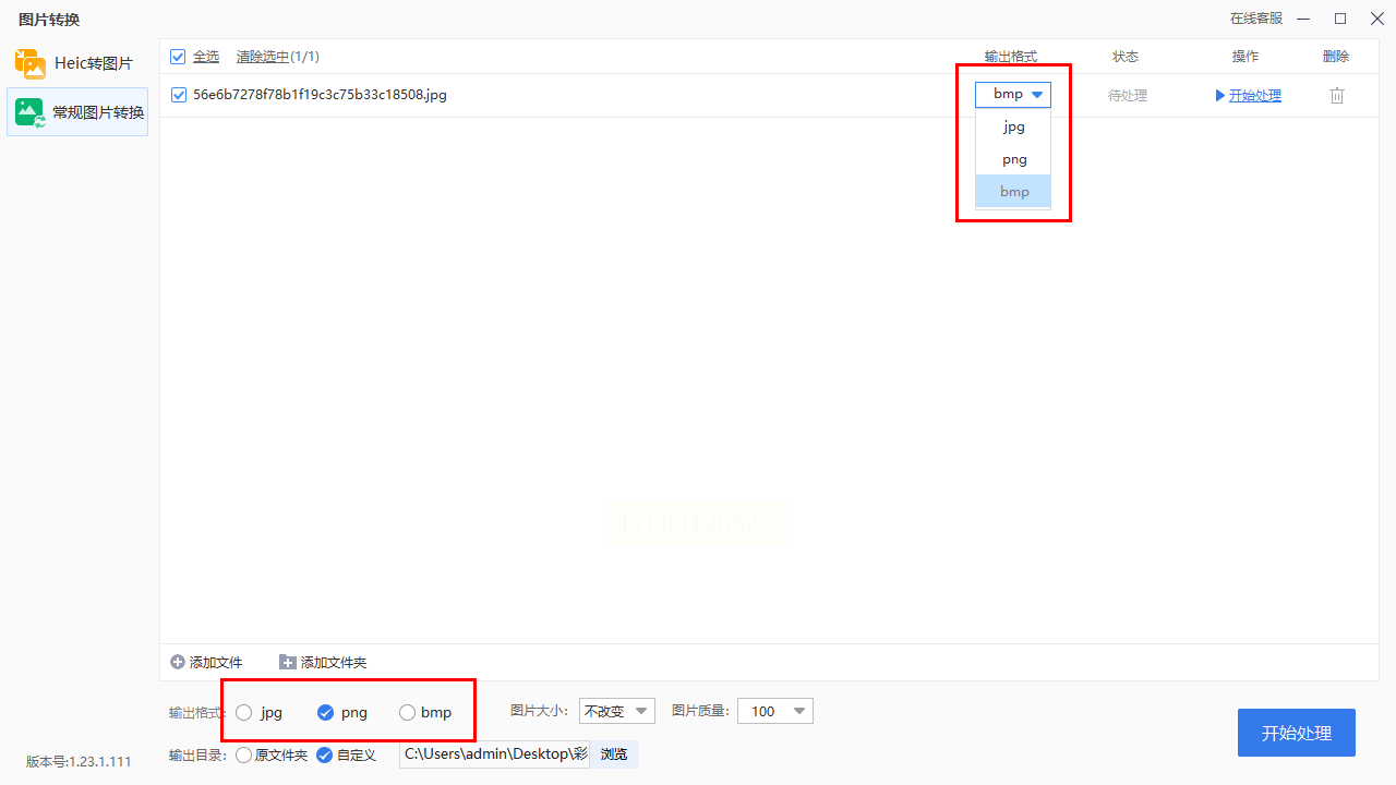 步骤二:在输出设置区域,将格式调整为BMP。此外,该工具还支持PNG、TIFF等20余种格式,满足多样化需求。