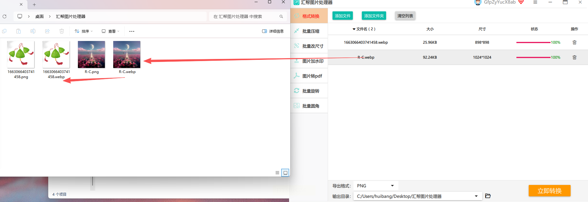 - 新手/办公族:优先用汇帮图片处理器,简单快捷,批量转换省心,轻松完成webp转换成png。