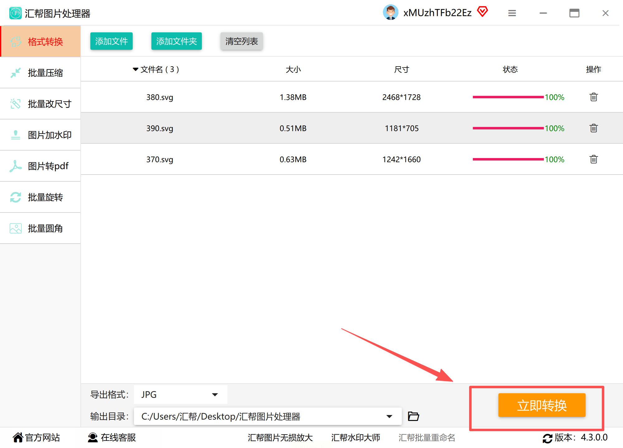 步骤四:点击“开始转换”按钮,系统将自动执行格式转换操作。转换速度取决于图片数量和大小。