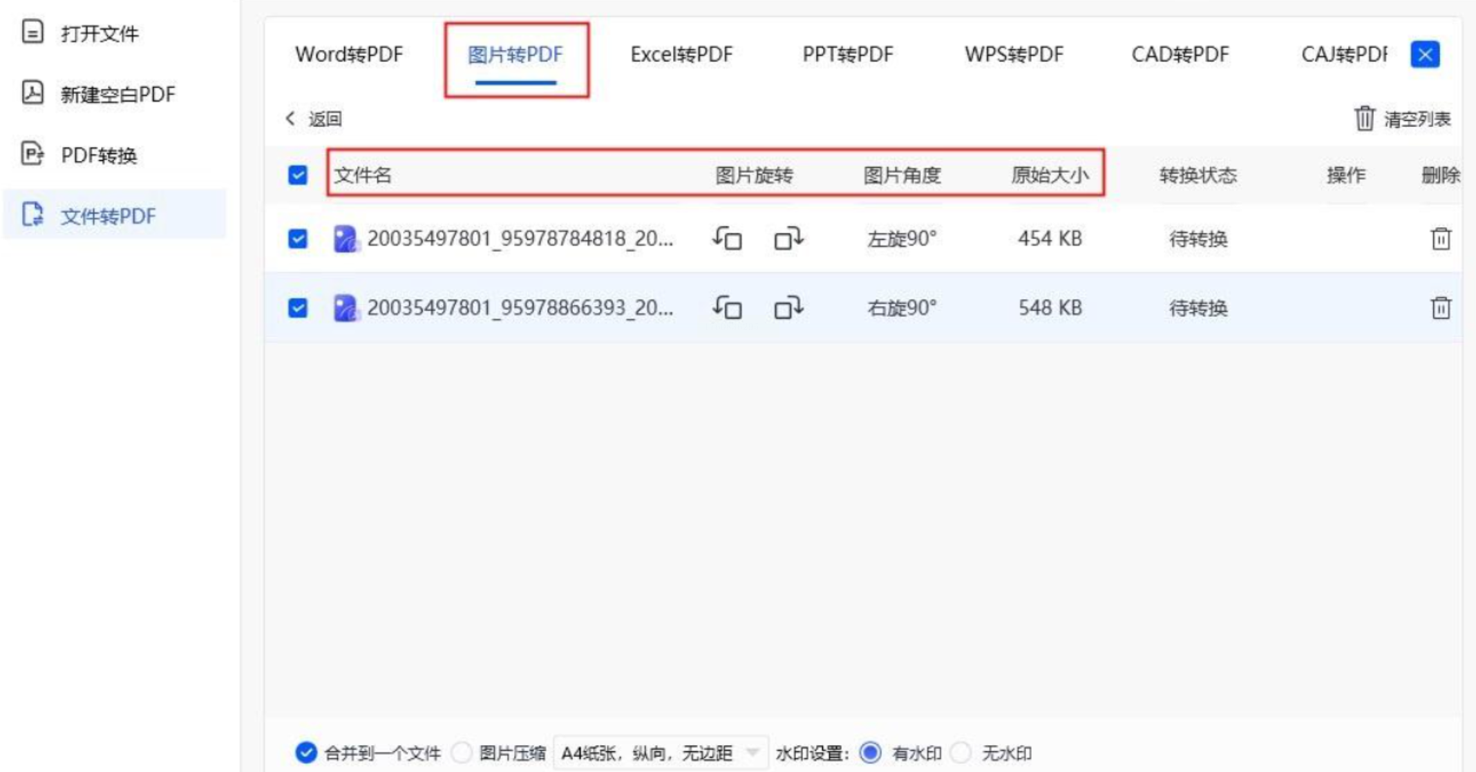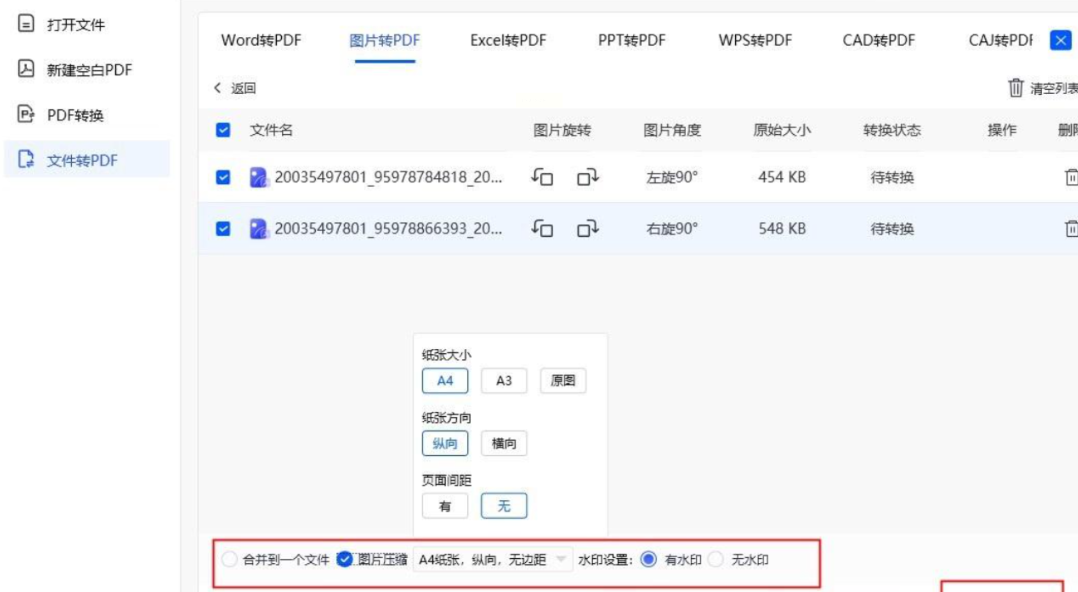 步骤二:支持导入图片、PDF、Word等混合格式文件(但仅图片能转PDF),支持跨格式批量导入。