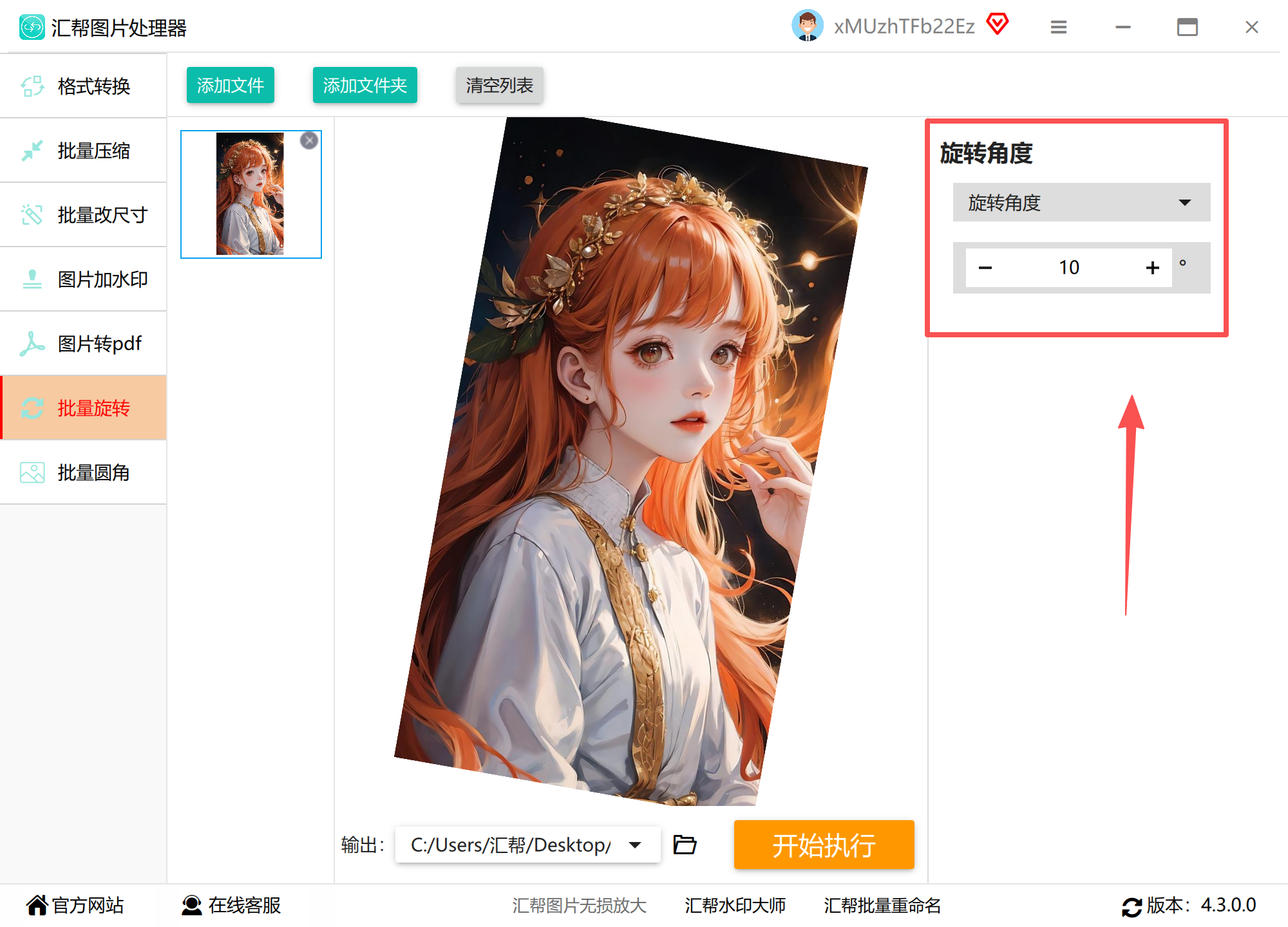 - 批量处理多张:汇帮图片处理器更高效,支持自定义角度和批量保存