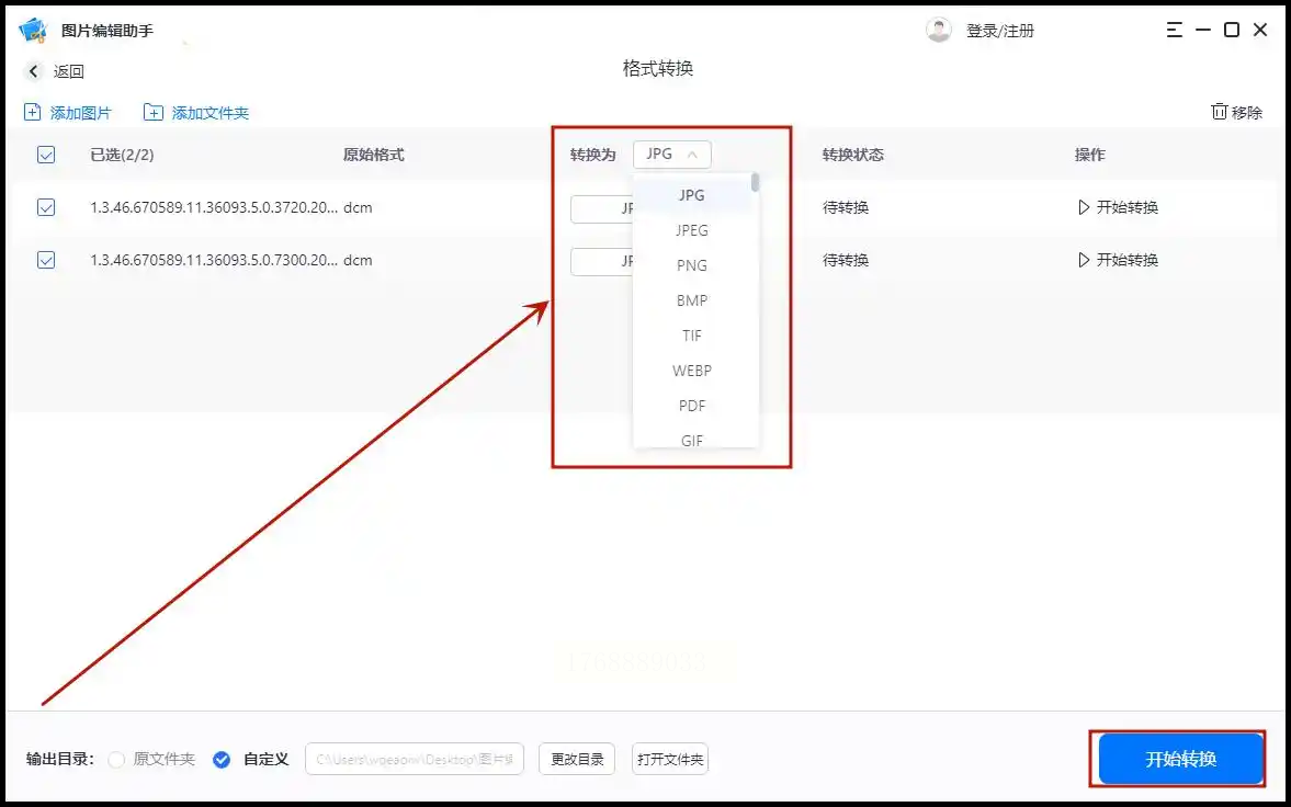 步骤四:接着,点击“输出目录”旁边的按钮,选择一个你希望保存转换后图片的文件夹。