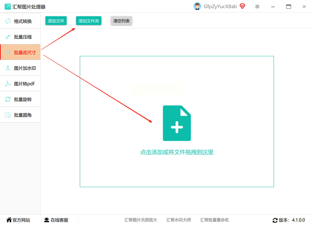 1. 打开软件后,在左侧功能栏选择“批量改尺寸”选项,然后在右侧区域导入图片。你可以通过文件选择、文件夹导入或直接拖拽图片的方式添加,支持多种格式且不限文件大小。