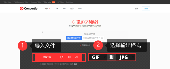 步骤一:打开Convertio网站,找到图片转换区域,点击“选择文件”按钮,把你的GIF动图上传上去。