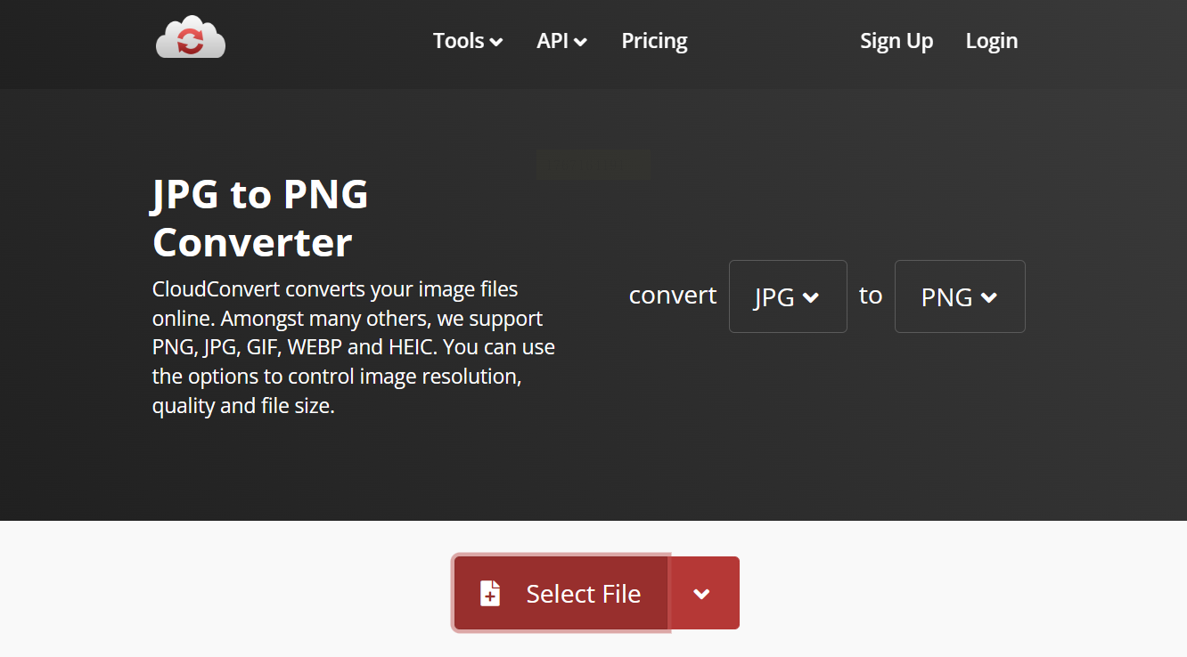 1. 上传文件:打开CloudConvert官网(无需注册),点击「Select Files」按钮,从本地选择JPG图片。