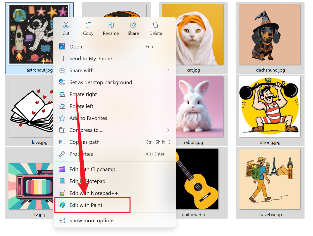 如果只是偶尔转换图片,且电脑自带的画图软件就能满足需求,无需安装第三方软件,直接右键操作即可。