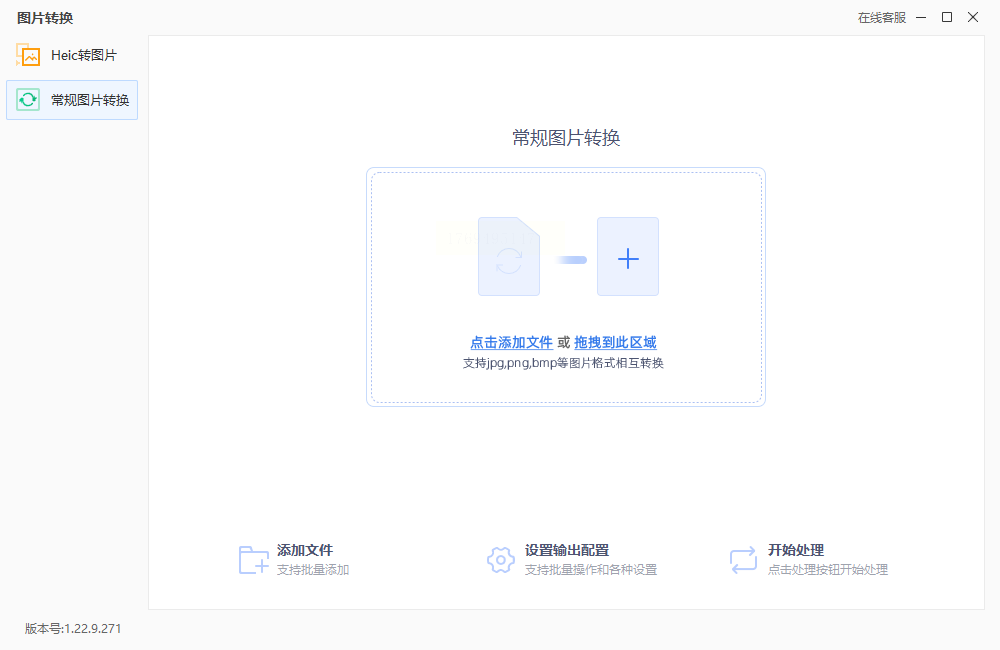 打开汇帮图片处理器后,点击主界面的「添加文件」按钮。支持单张或批量导入,可通过拖拽文件至软件窗口快速完成,无需重复点击。