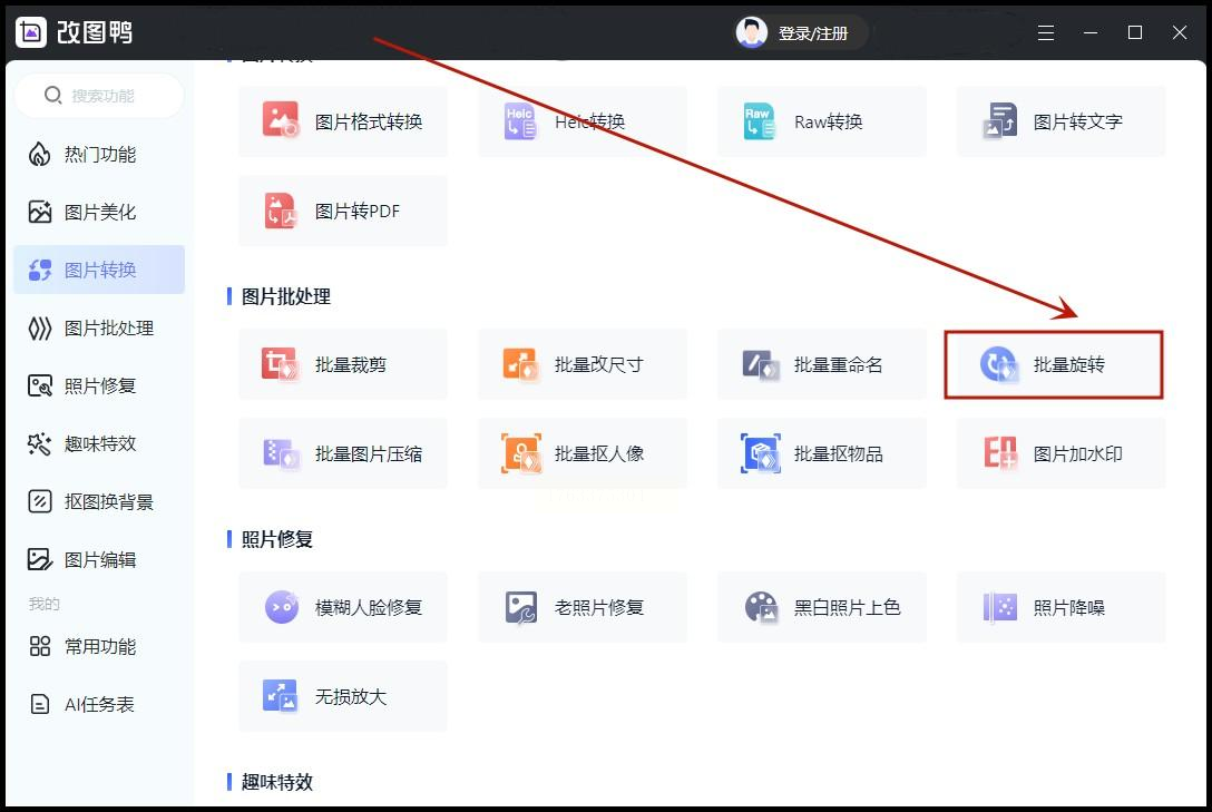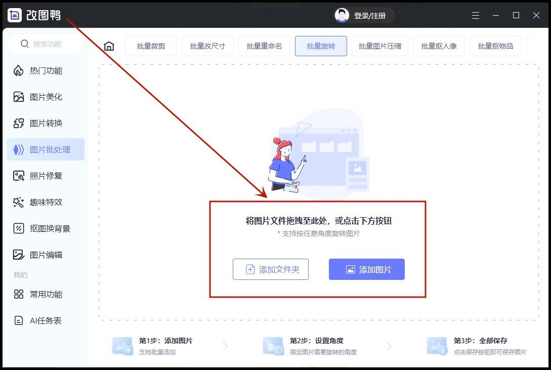 1. 网页端直接搜索“改图鸭”进入批量旋转页面
