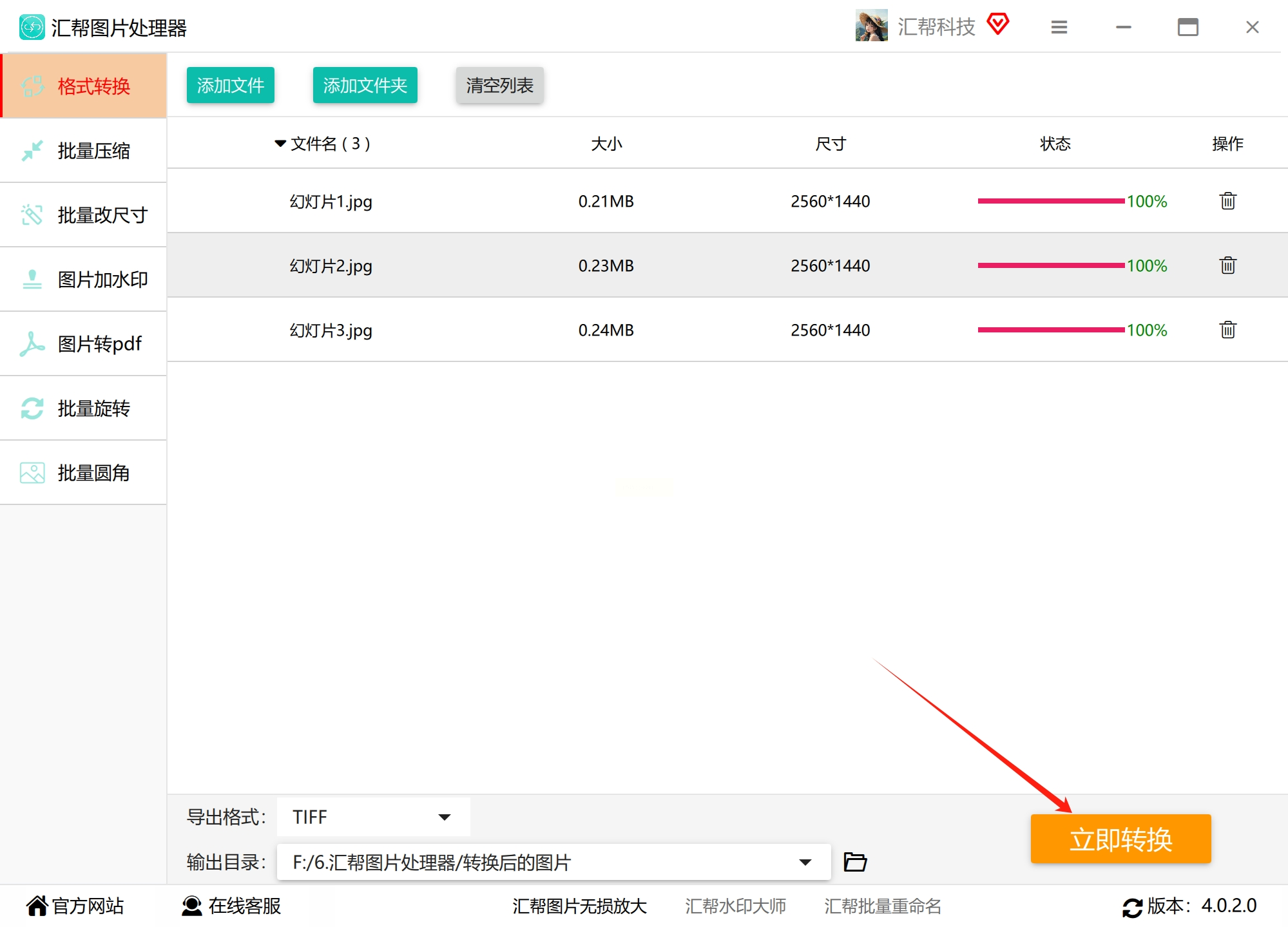 在计算机上安装并打开“汇帮图片处理器”软件。启动后,你会看到软件界面左侧有一个功能列表,其中包含了多种图像处理选项。在这里,我们需要找到并点击“格式转换”功能,进入格式转换的工作区域。
