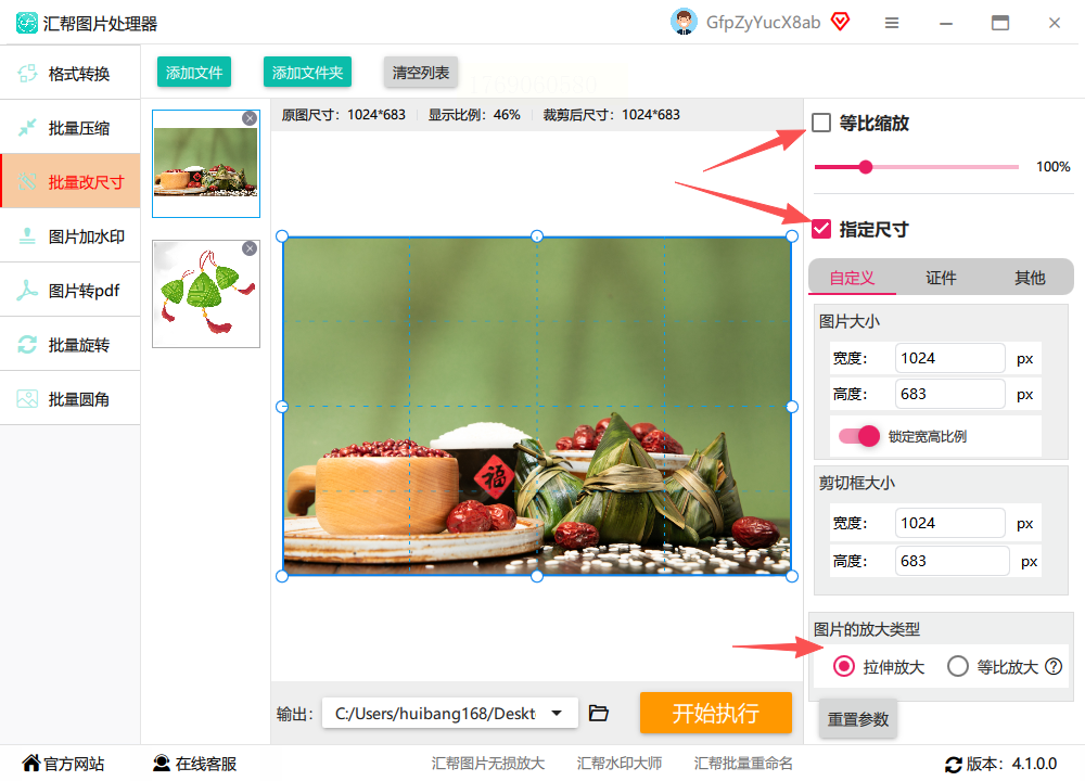 4. 输出路径设置:点击“输出路径”选项,选择保存修改后图片的位置(如默认保存在桌面,也可自定义到其他文件夹)。