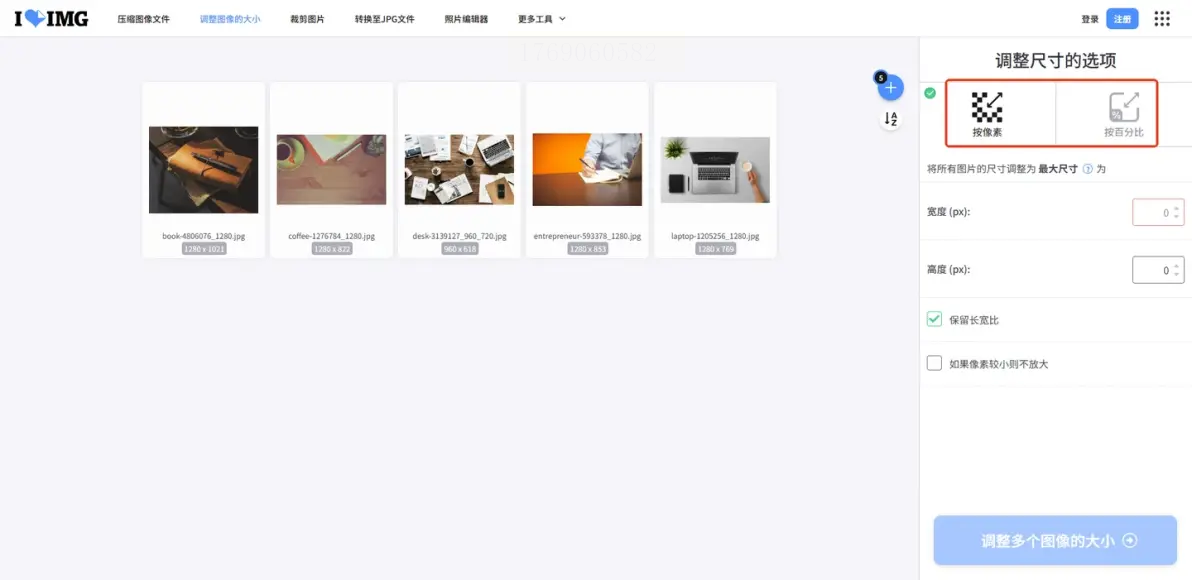 ILoveIMG支持多种图片处理功能,尤其适合批量压缩: