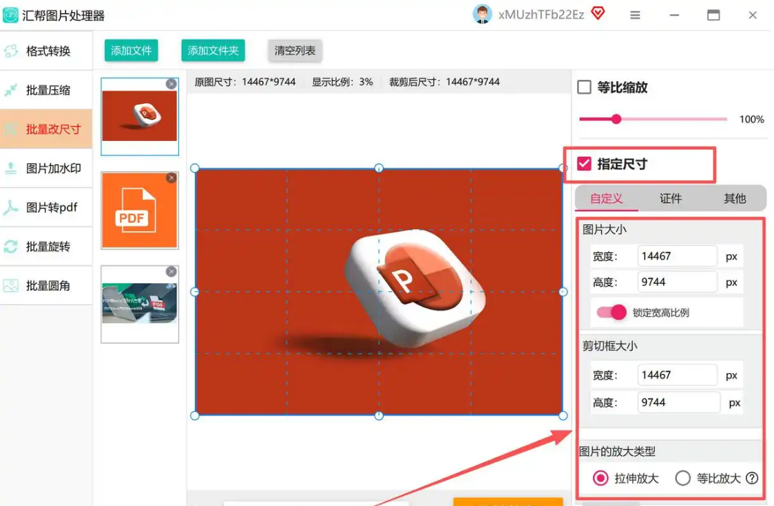 3. 改尺寸:右边面板有个“尺寸调整”,下面有预设方案,比如“社交媒体”里的“小红书封面(1:1)”、“抖音封面(9:16)”,直接点选就行。如果想自定义,就手动输入宽高值(比如2000×2000像素)。