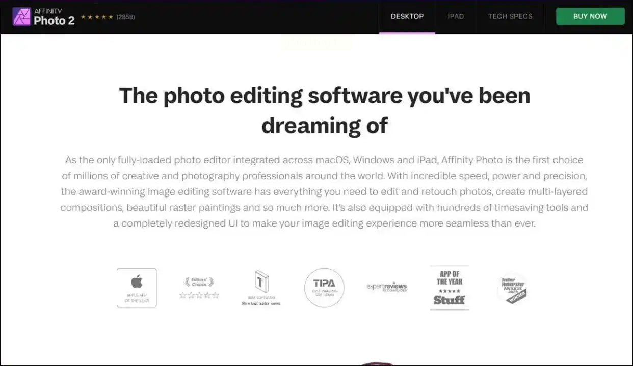 Affinity Photo是一款功能强大的图像编辑软件,支持广泛的格式转换,包括JPG到TIFF。适合需要精细调整图片参数的用户。