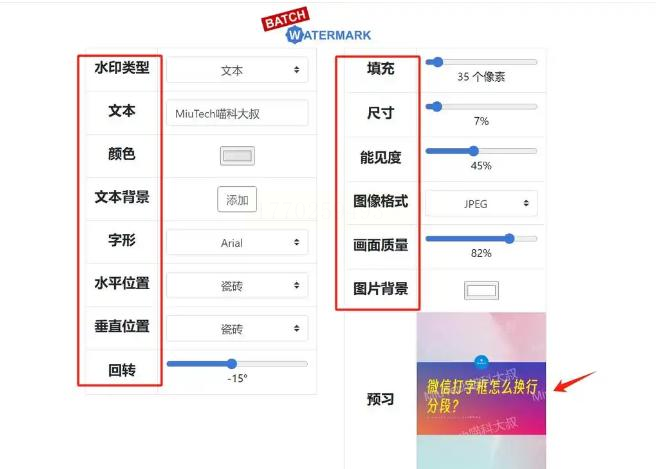 记得看左边的预览窗口!每次调整参数,预览图都会实时更新,你能直接看到水印在图片上的效果,不合适就继续调,直到满意为止。