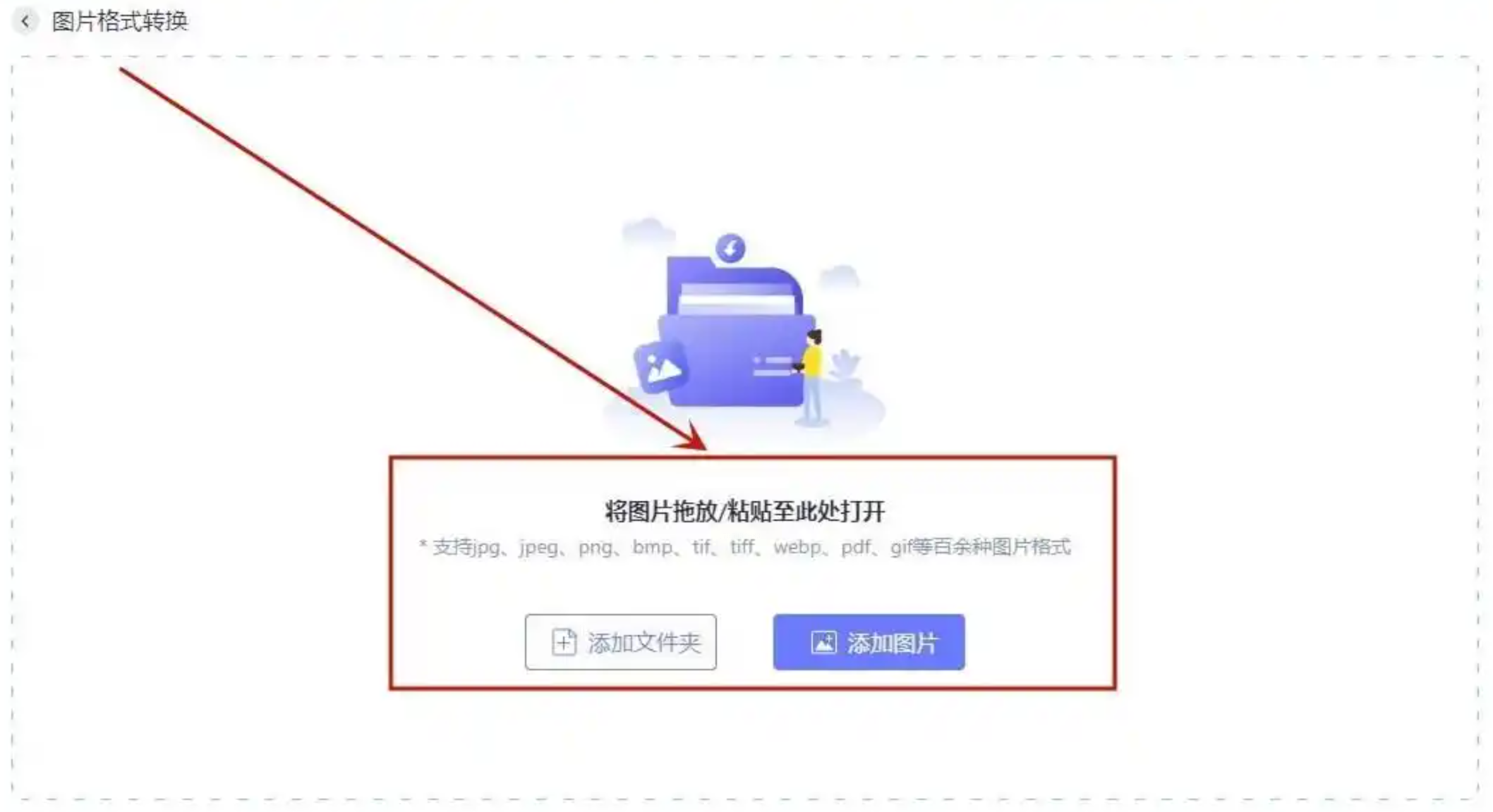 打开汇帮图片处理器后,软件主界面会显示功能菜单。支持两种导入方式: