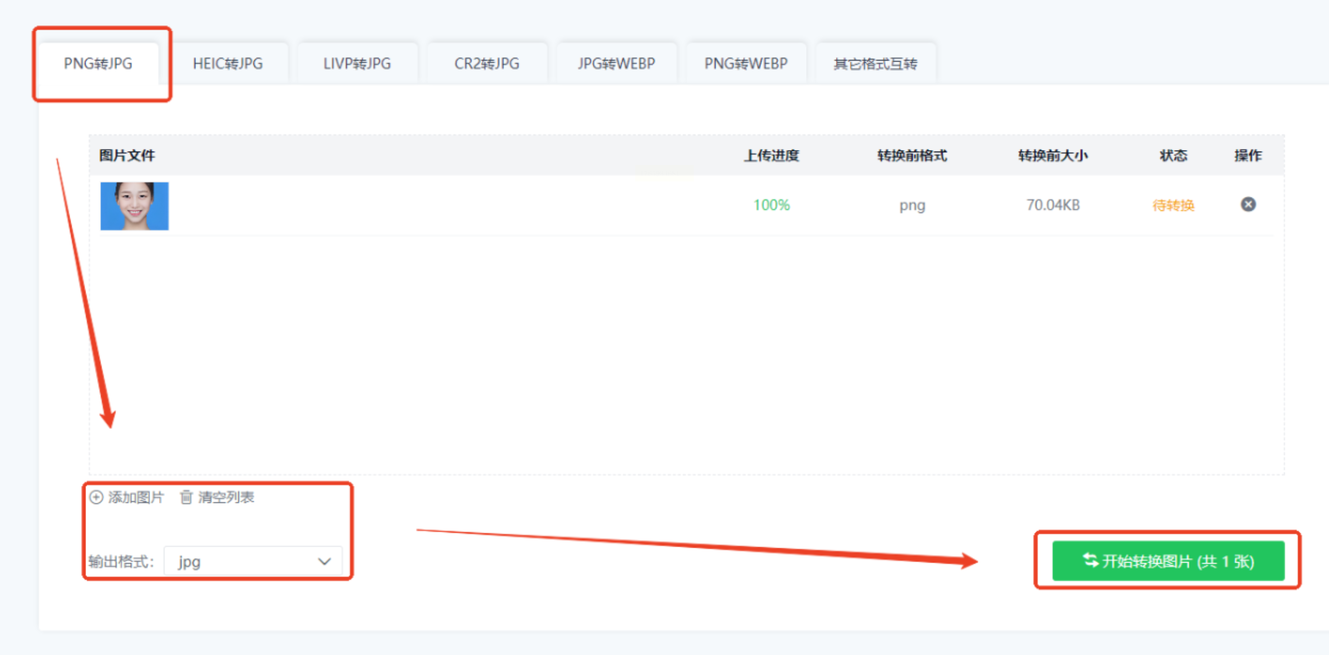 - 步骤2:进入“图片工具”→“图片格式转换”,点击“选择文件”上传PNG图片;