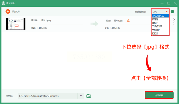 1. 格式选择:在界面右侧的“导出格式”下拉菜单中,选择“JPG”格式。软件支持多种格式互转,除JPG外还包含PNG、GIF、BMP等常用格式;