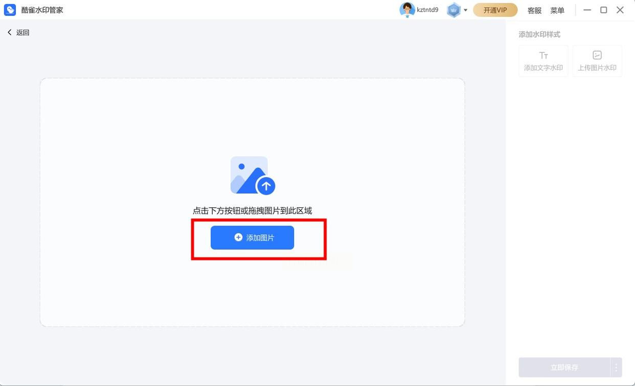 打开这类软件,首页通常很简洁,直接点击 “图片加水印” 这个大模块。