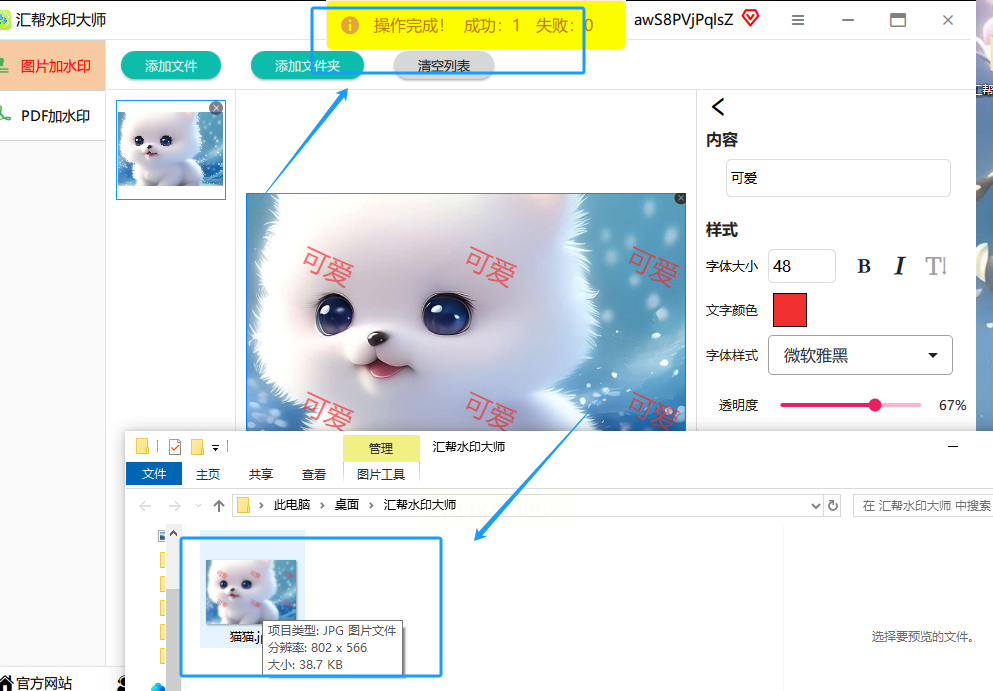 处理速度很快,完成后,软件通常会弹窗提示你。点开输出目录,所有带水印的新图片都在那里等着你了。