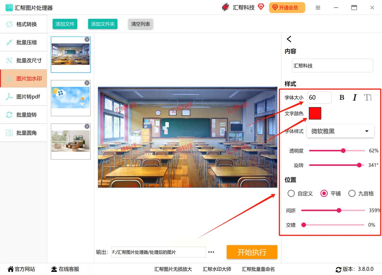 7. 一键执行:确认所有设置无误后,点击右下角的“开始执行”按钮。软件就会自动为你导入的所有图片批量加上水印了。