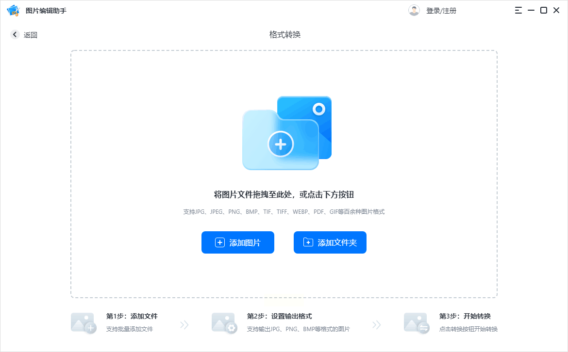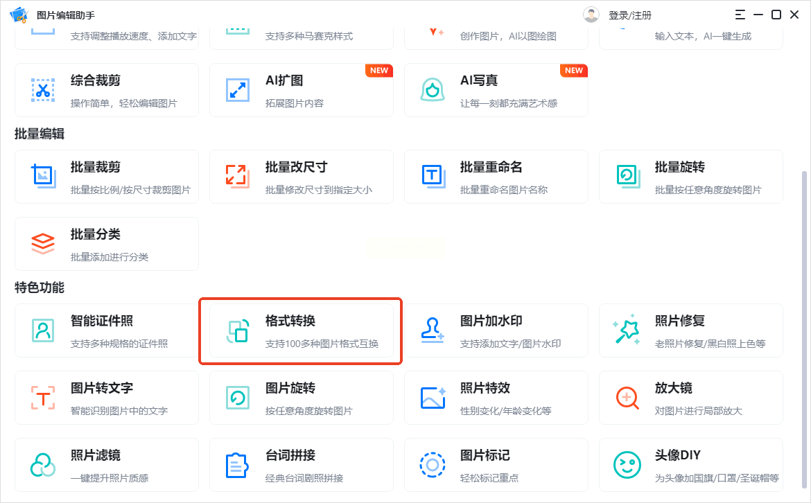 1. 进入图片转换模块:打开软件后,在主界面找到「图片格式转换」选项(通常在「常用工具」分类下),点击进入独立的转换窗口。