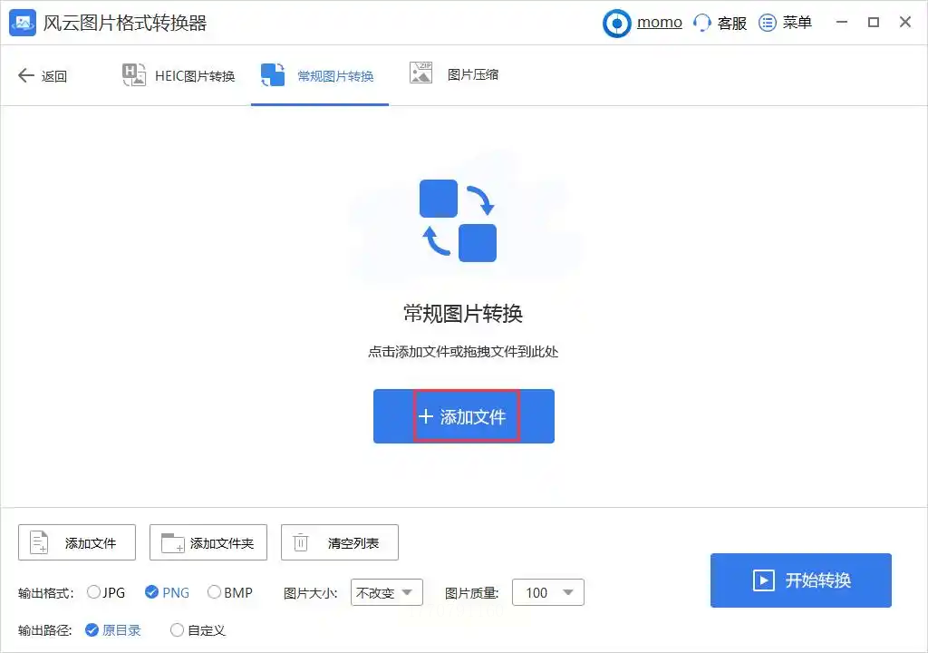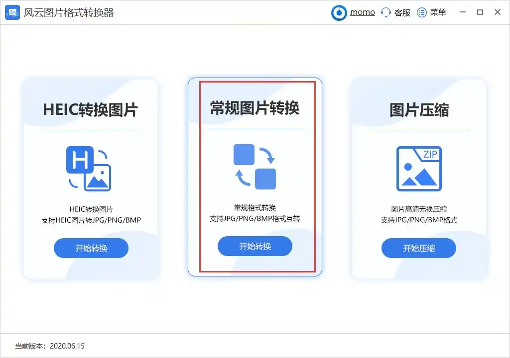 2. 选择转换功能:在主界面选择「常规图片转换」模块,区别于批量压缩或格式合并功能,确保选择正确的转换类型。