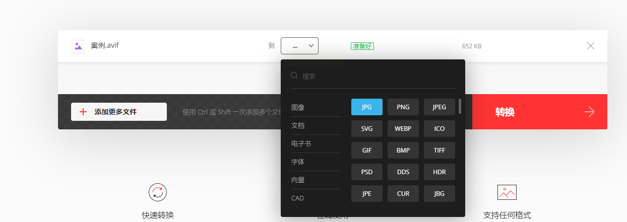 适用场景:临时转换手机拍摄的AVIF图片,或在公共电脑上快速转换文件。