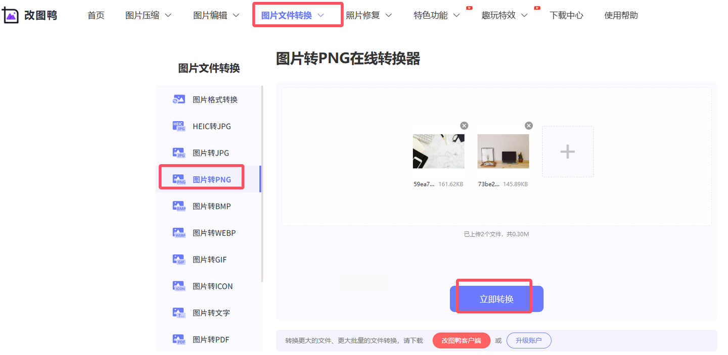 1. 进入改图鸭官网,选择"图片格式转换"功能