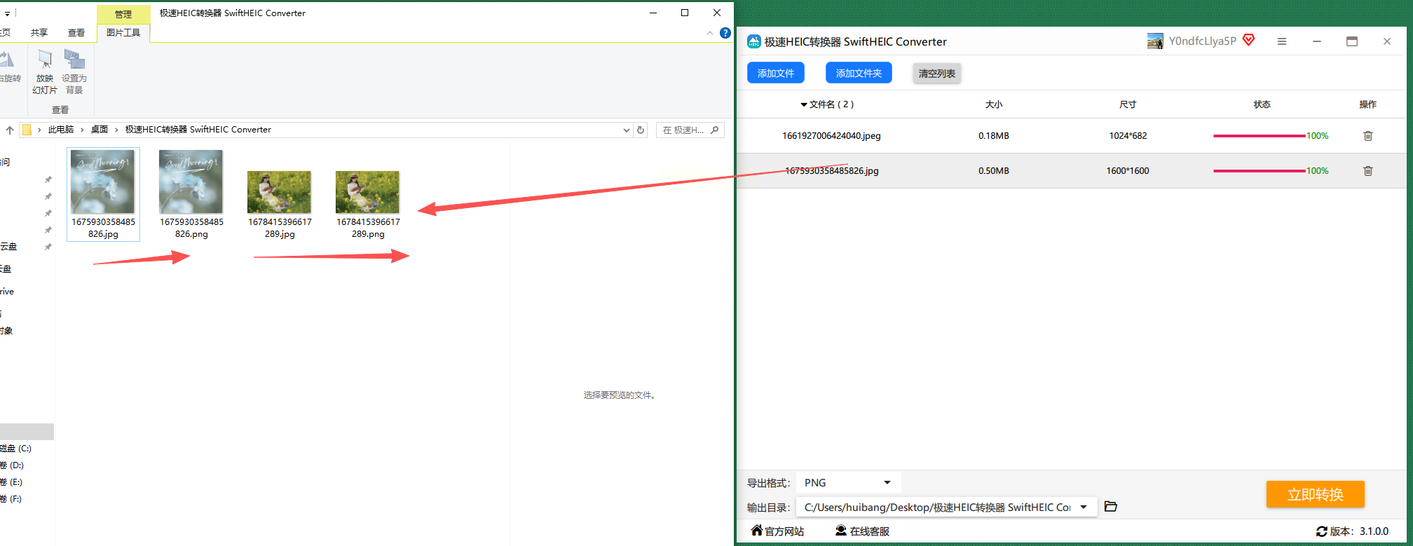 确认格式和目录无误后,点击右下角的"立即转换"按钮。软件会在保留原始jpg文件的基础上,自动生成新的png文件,转换过程中能看到进度条实时显示,处理速度很快。