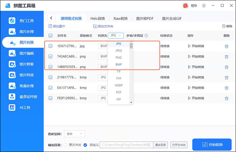 特色功能:支持HEIC/PNG等专业格式与BMP双向转换