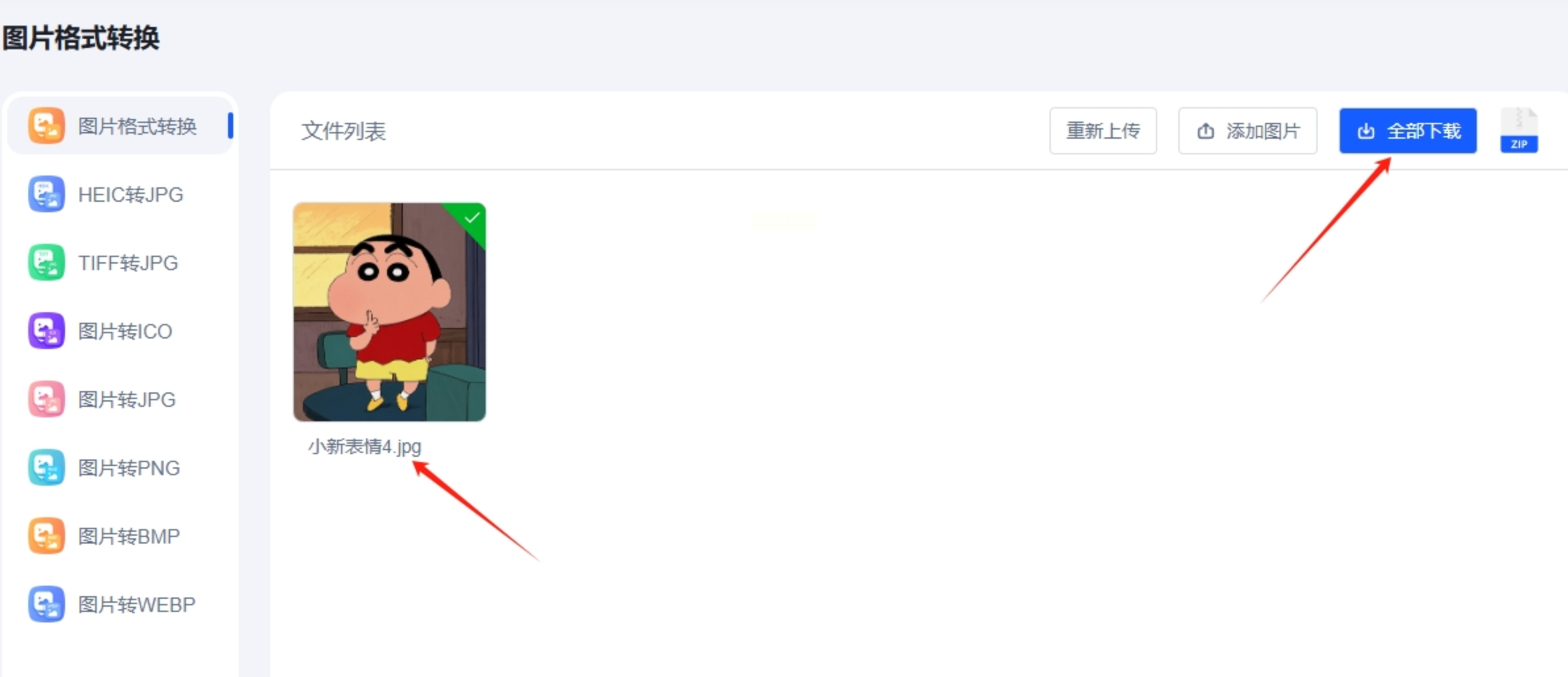 5. 转换完成后点击"下载",单张直接保存,批量自动打包为ZIP压缩包