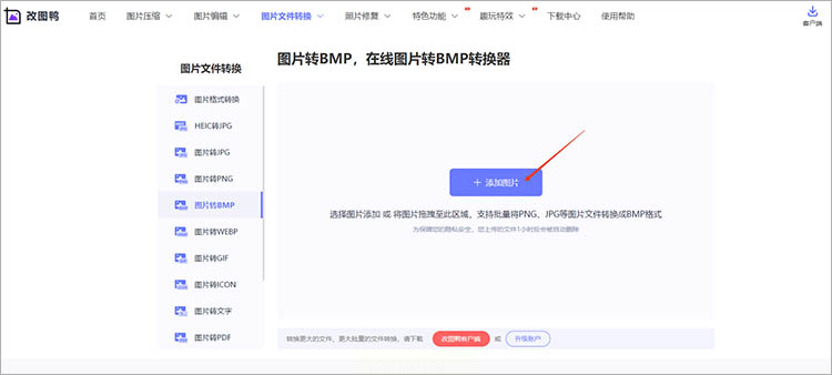 1. 浏览器访问改图鸭官网(输入关键词"PNG转BMP"直达)