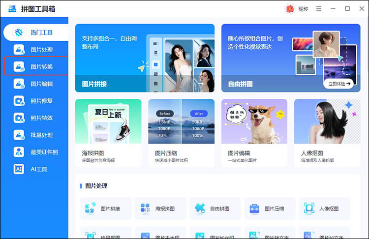 1. 打开软件后点击"图片转换"→"通用格式转换"